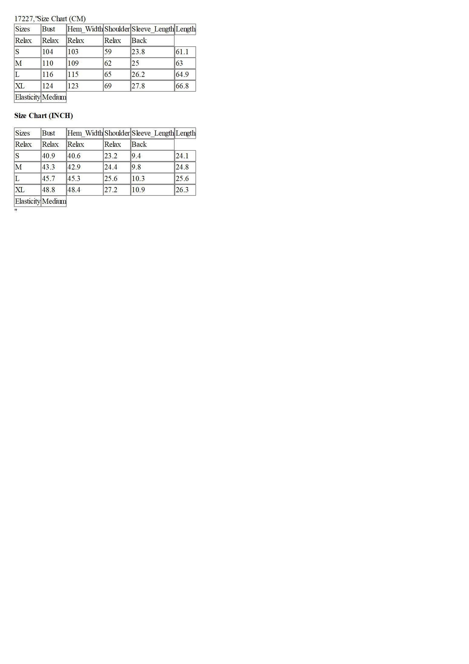 Size Chart (CM)