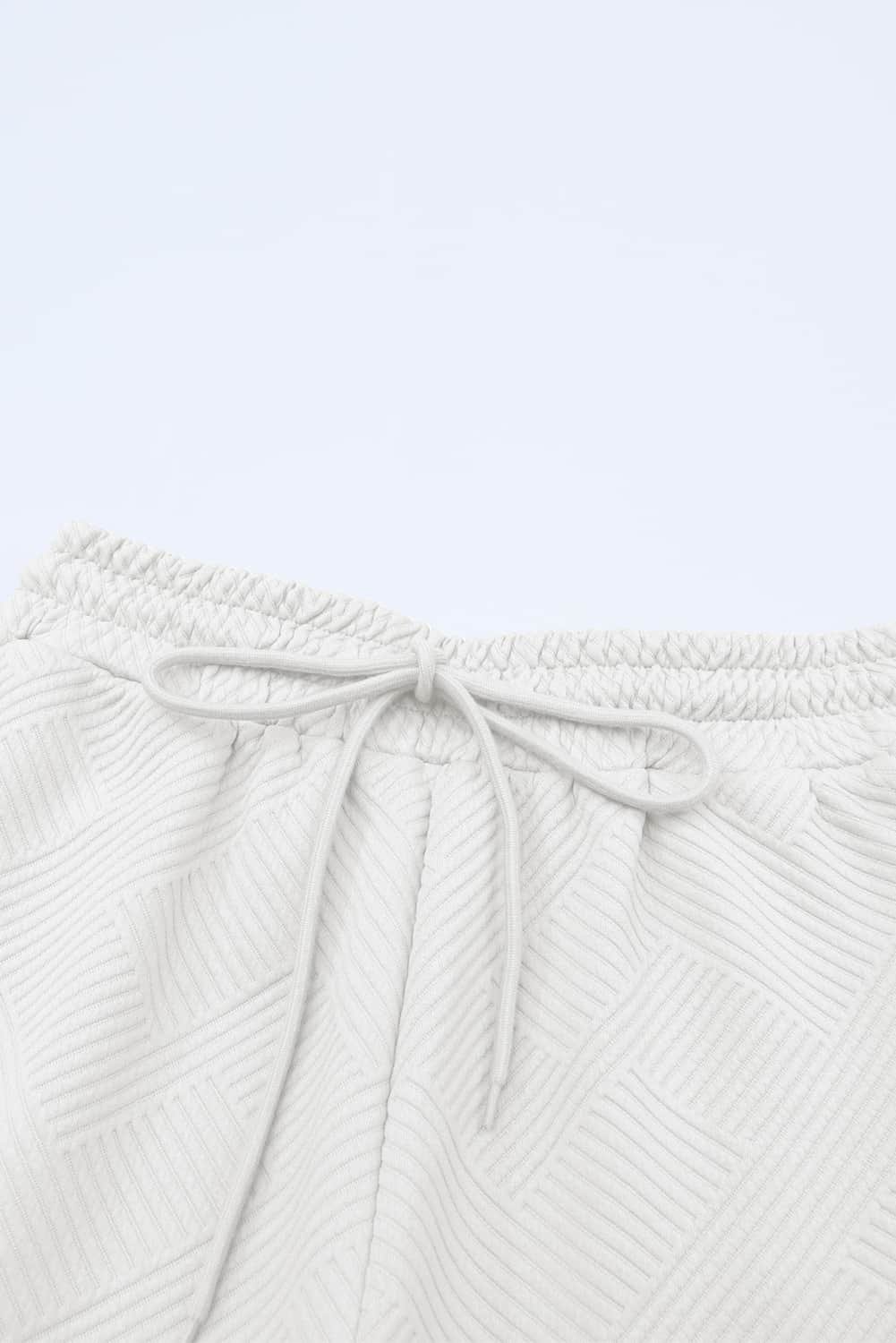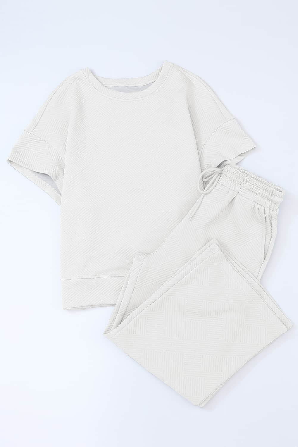 Bright White Textured Loose Fit T Shirt And Drawstring Pants Set