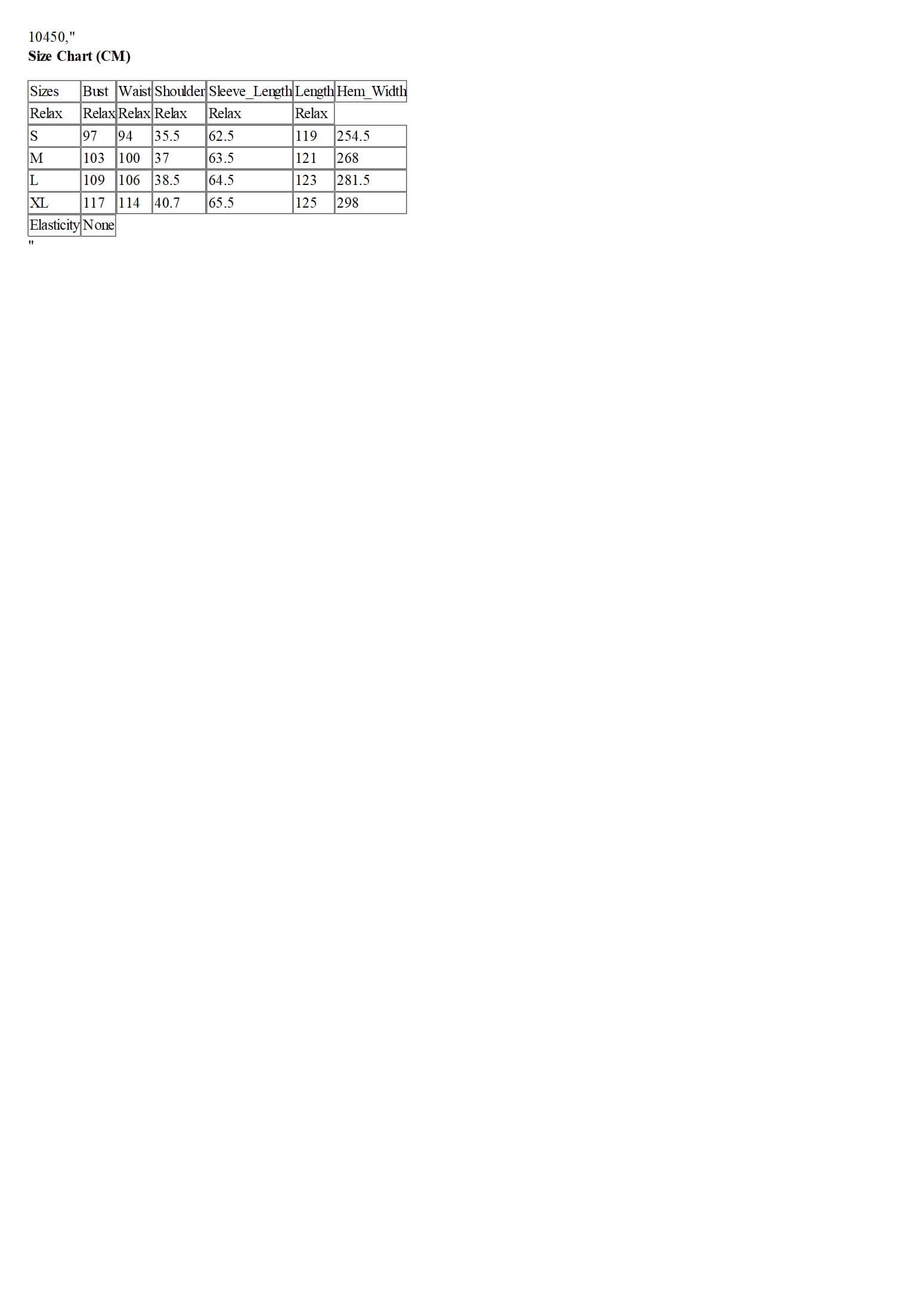 Size Chart (CM)