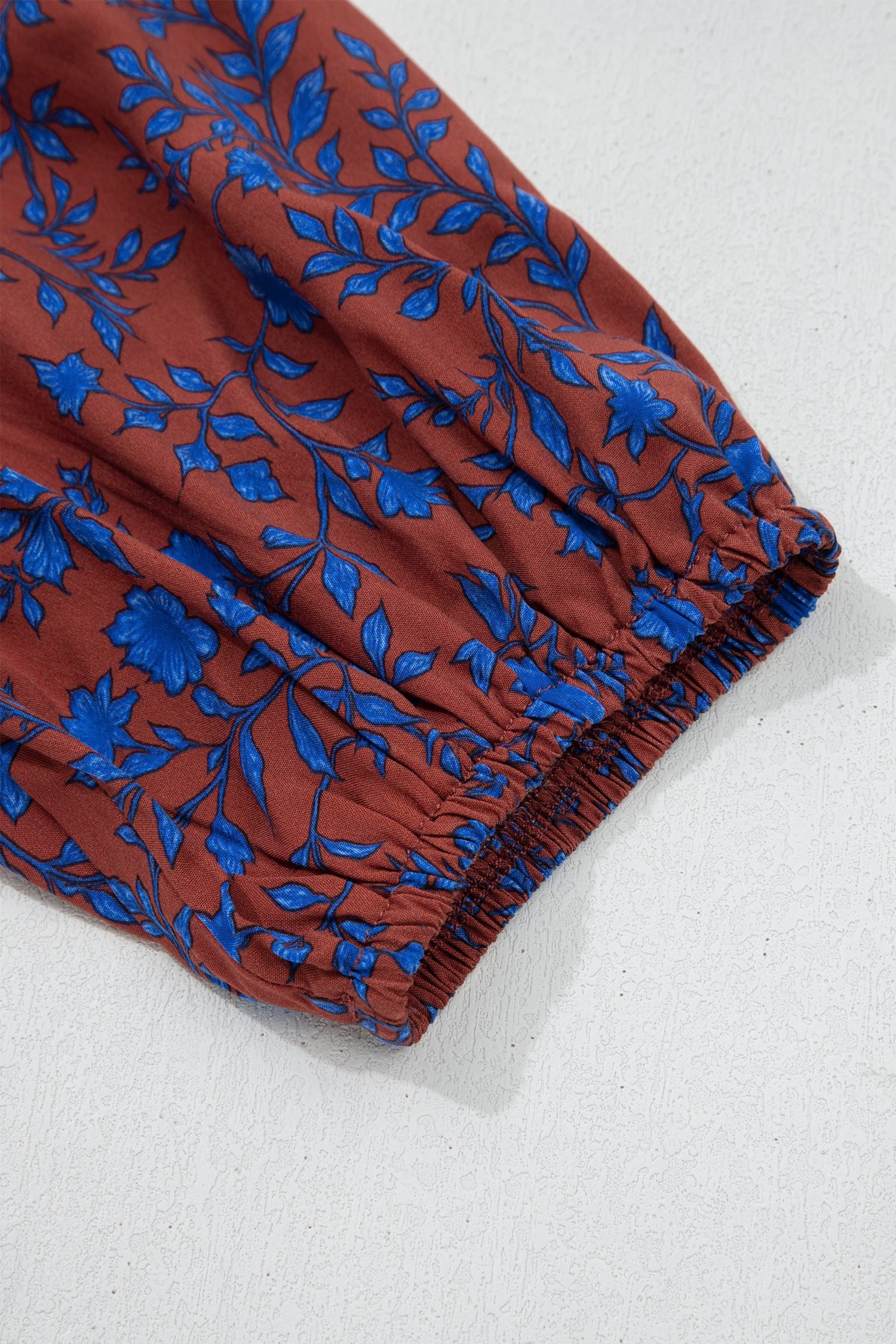 This casual long dress has a playful v neck and 3/4 puff sleeves.