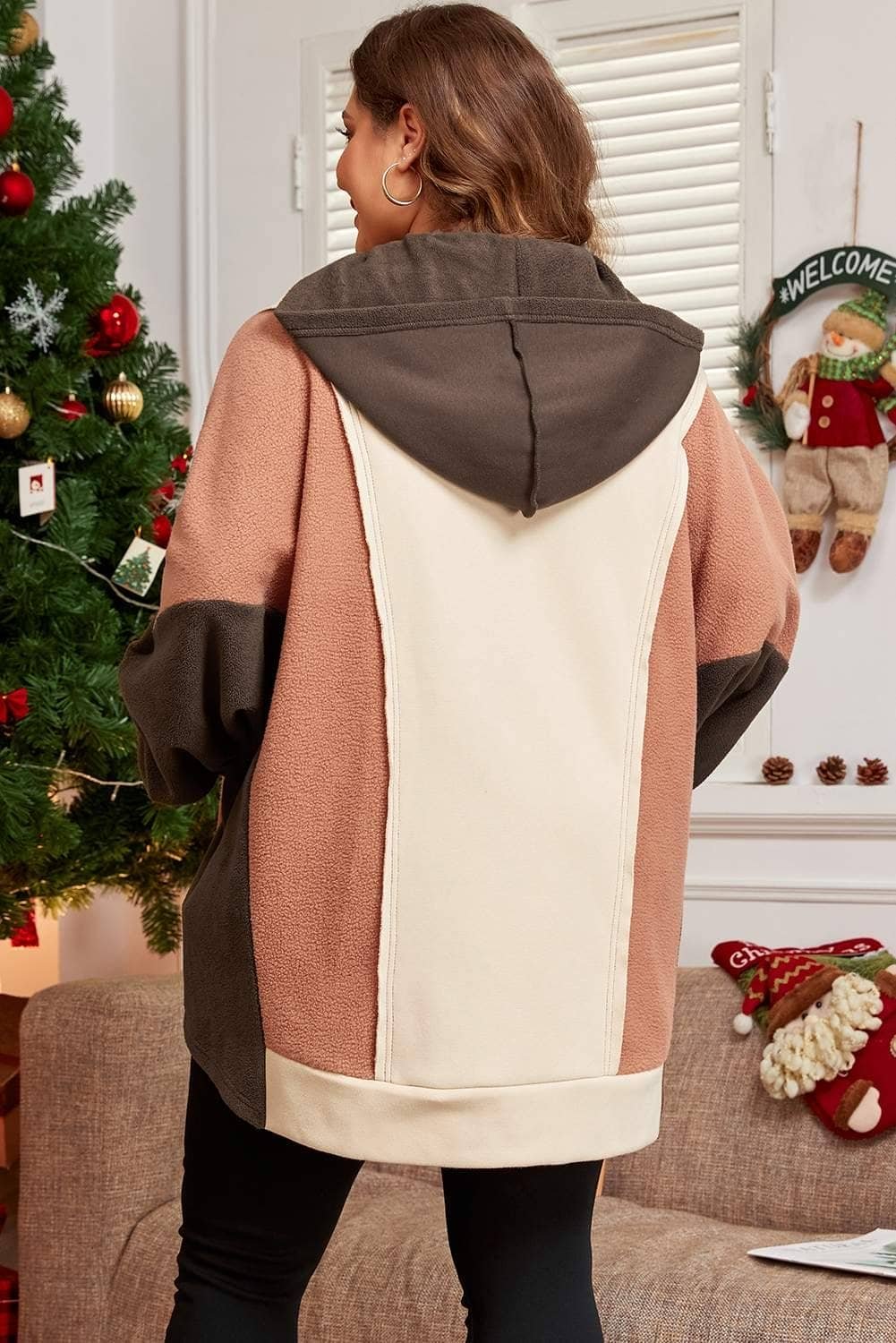 - Trendy plus size hoodie with exposed seams for a stylish edge.