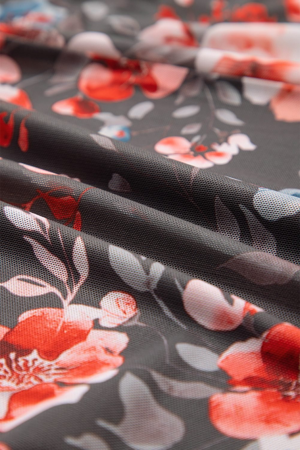 Mesh with a multi-hued floral print, very flowy and graceful.