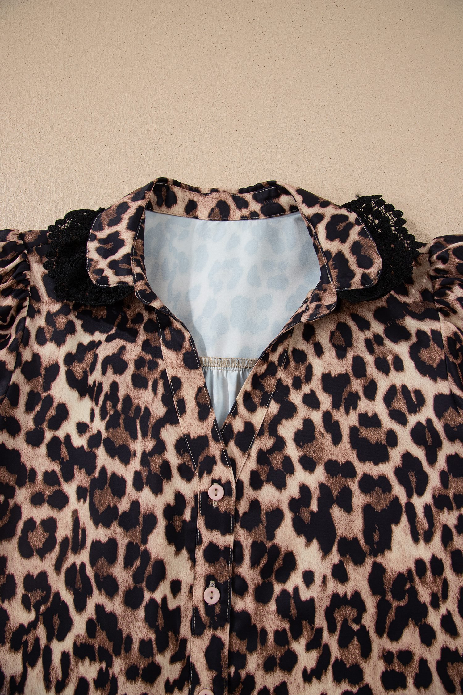 Be the first to review “Brown Leopard Print Button Down Lace Trim Short Sleeve Shirt”