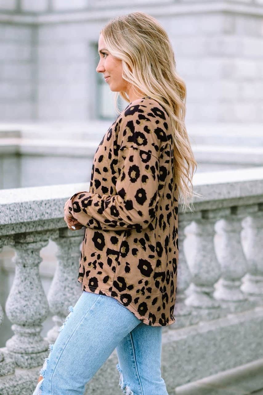 Be the first to review “Brown Leopard Split Joint V Neck Long Sleeve Tops”
