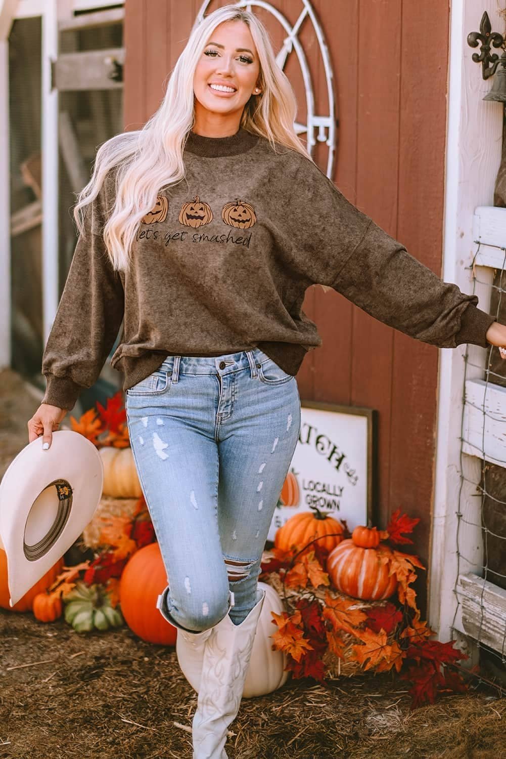 Lets Get Smashed Halloween Pumpkin Graphic Sweatshirt