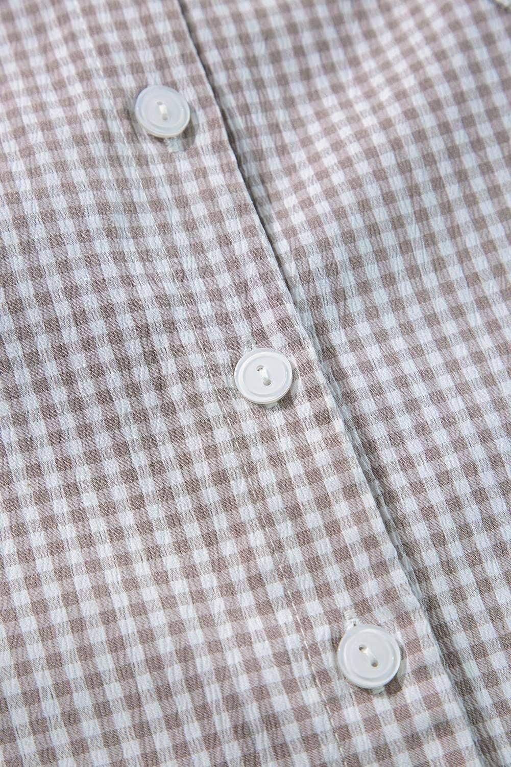 Be the first to review “Brown Plaid Flounce Sleeve Notched Neck Ruffled Shirt”