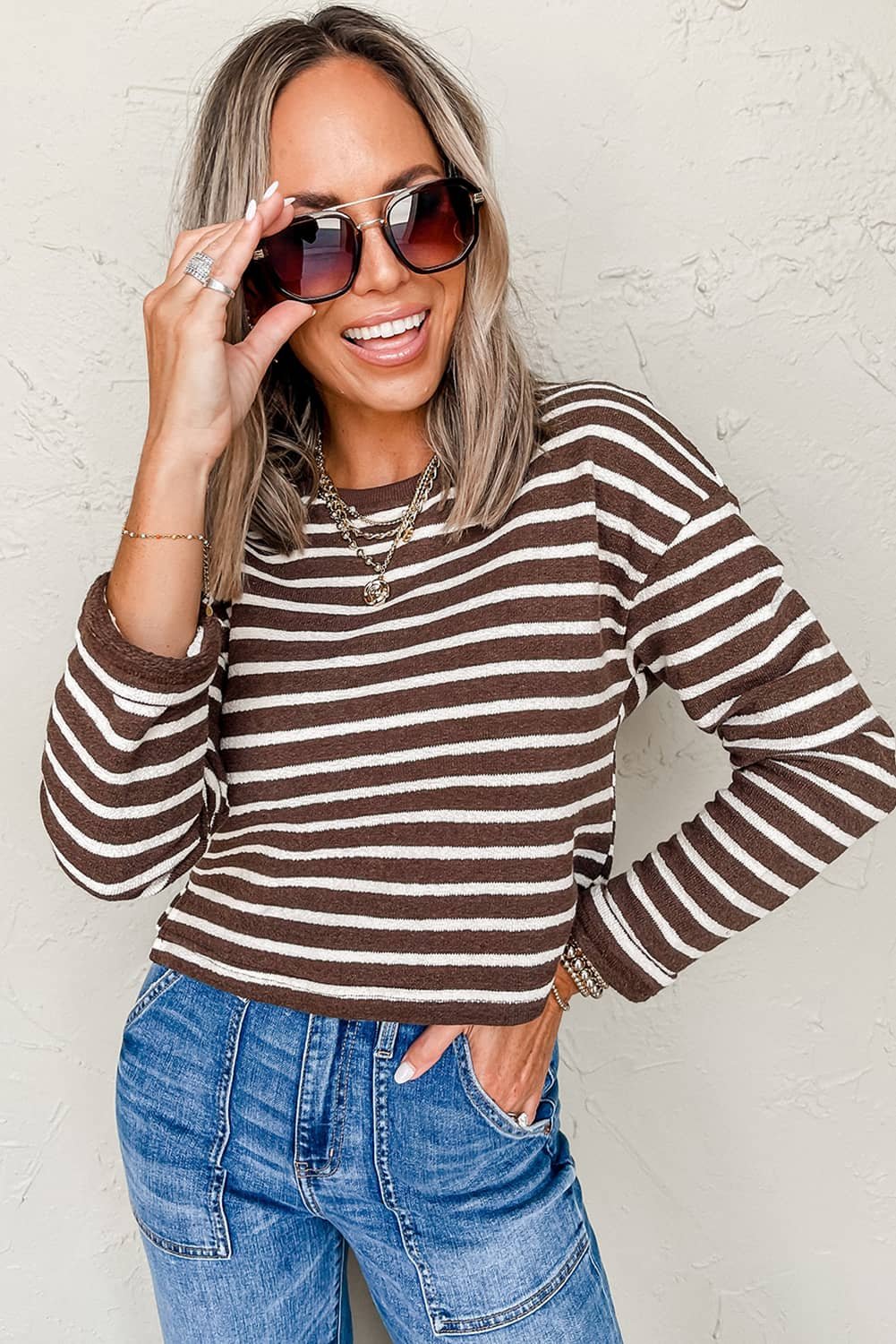 - This classic long sleeve t shirt is classic with a striped silhouette.