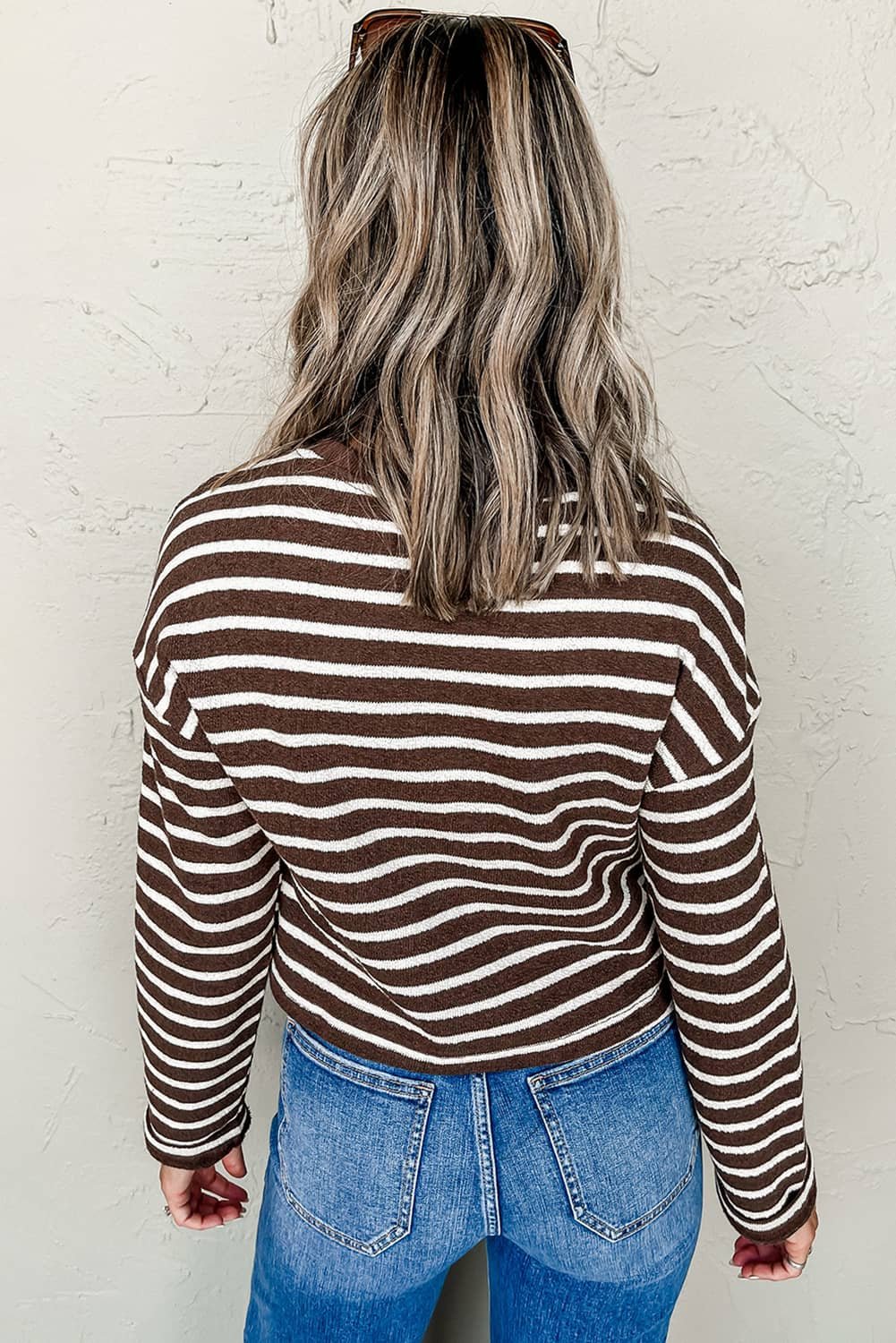 The drop shoulder design and cropped length give a modern look.