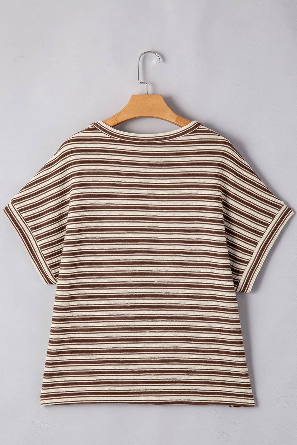 - The T-shirt showcases a timeless striped pattern that adds a classic and versatile touch.