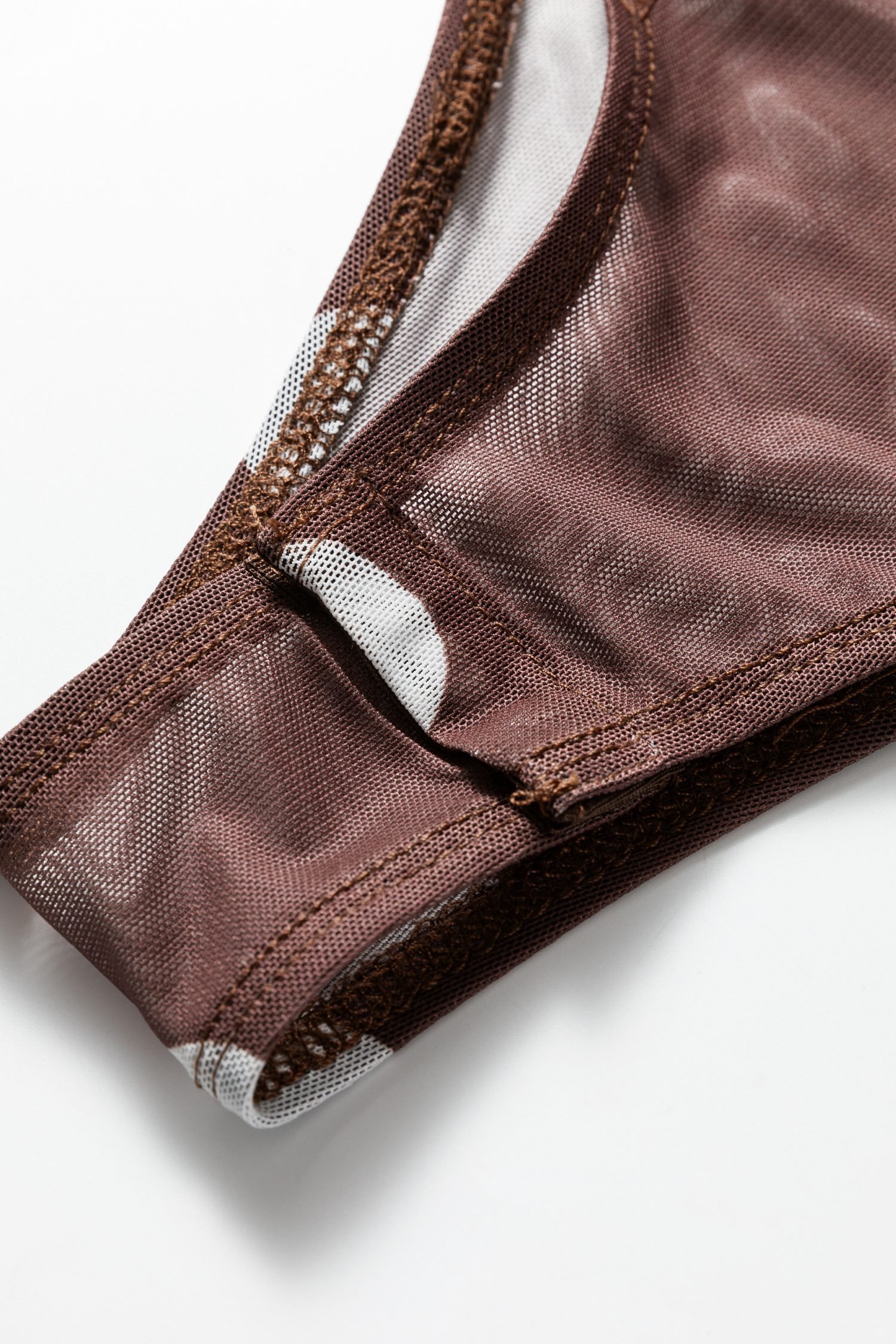 Be the first to review “Brown Vintage Polka Dot Print Mesh Long Sleeve Bodysuit”