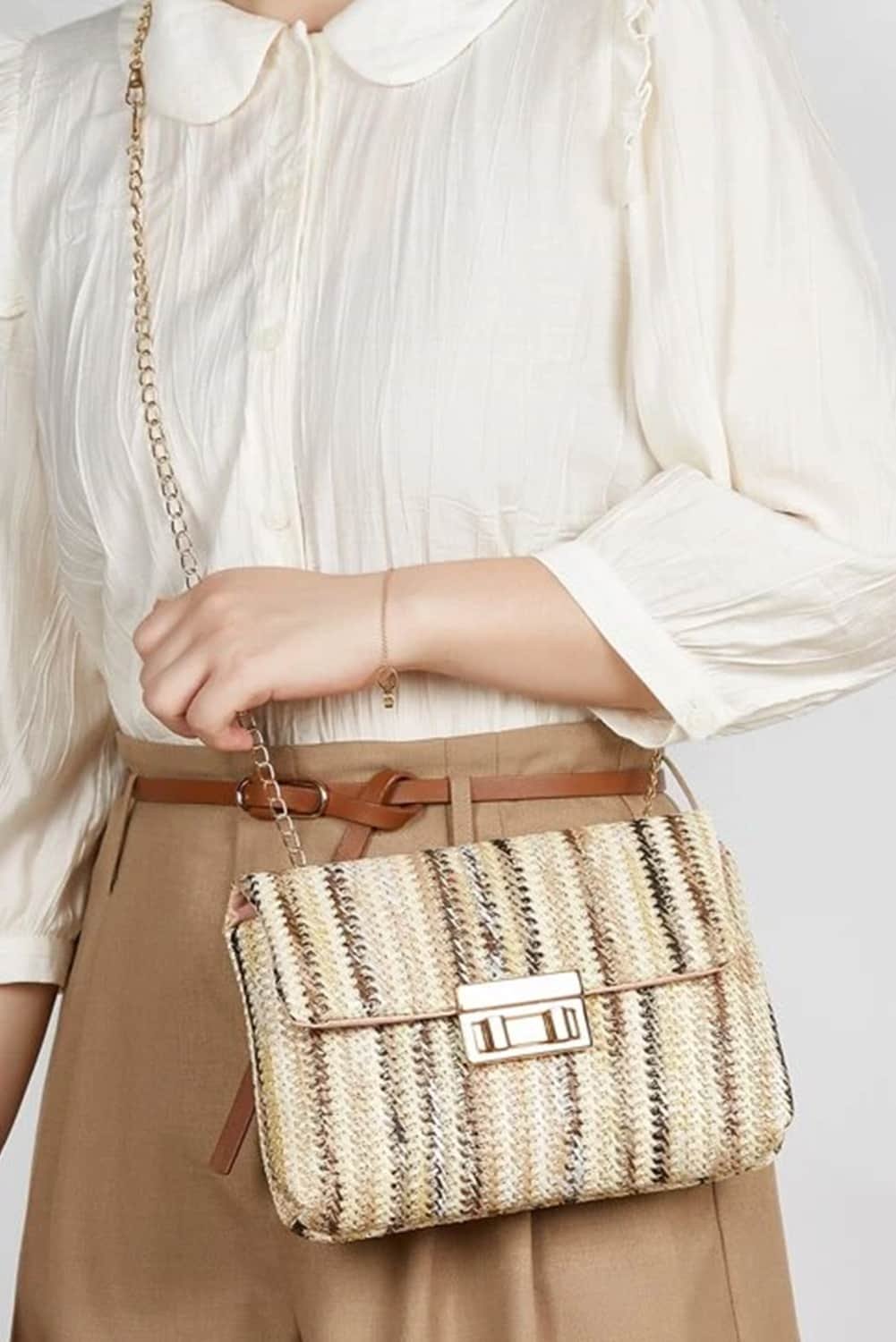 Be the first to review “Camel Bohemian Woven Gold Chain Shoulder Bag”