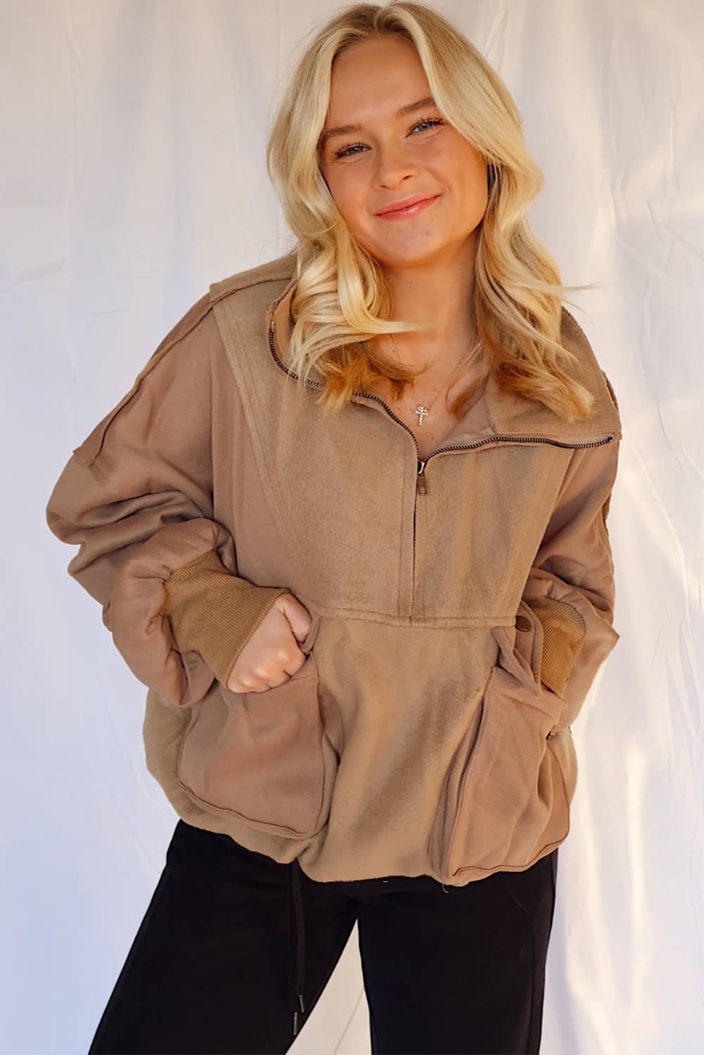 Half zipper design makes this baggy sweatshirt easy to layer.