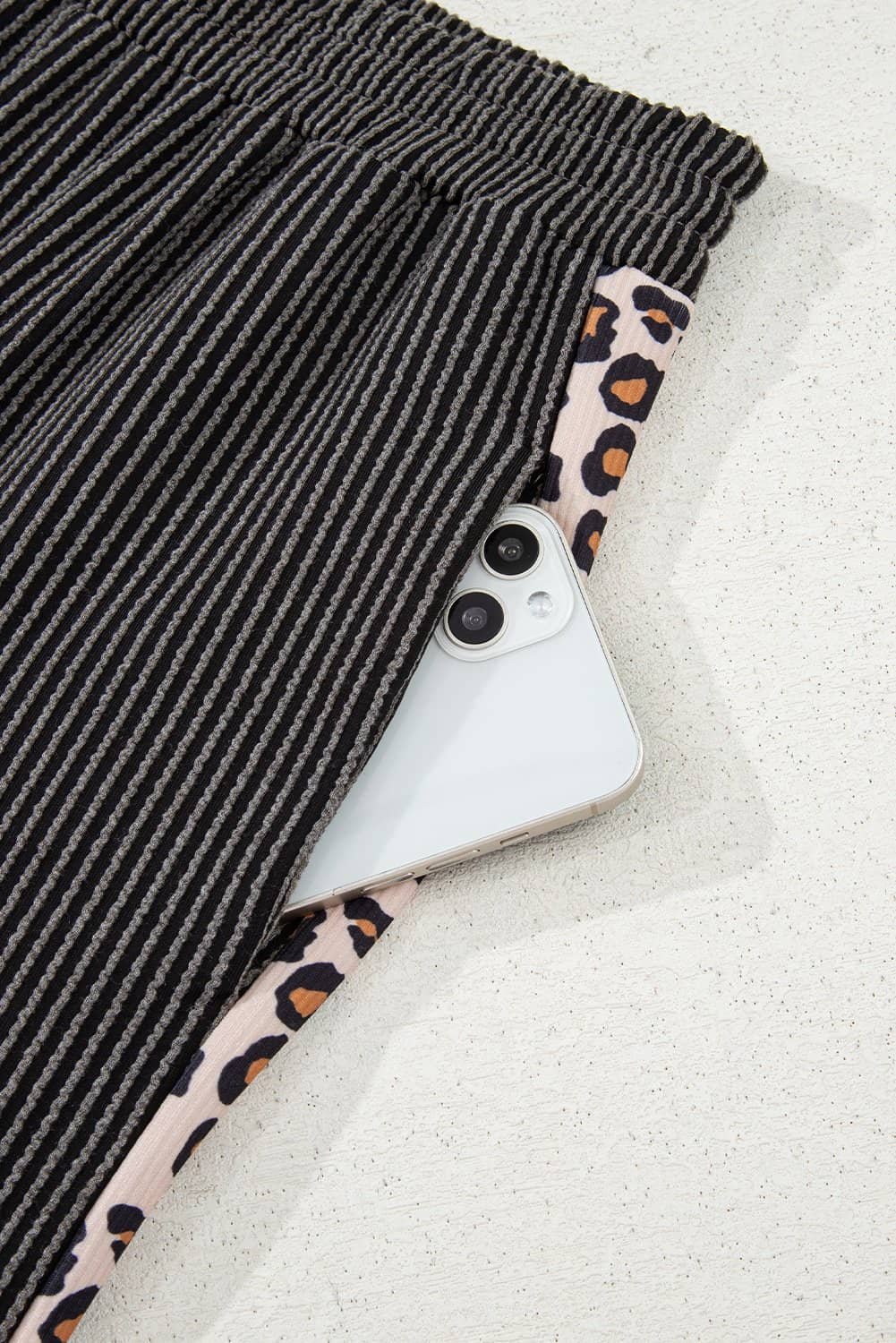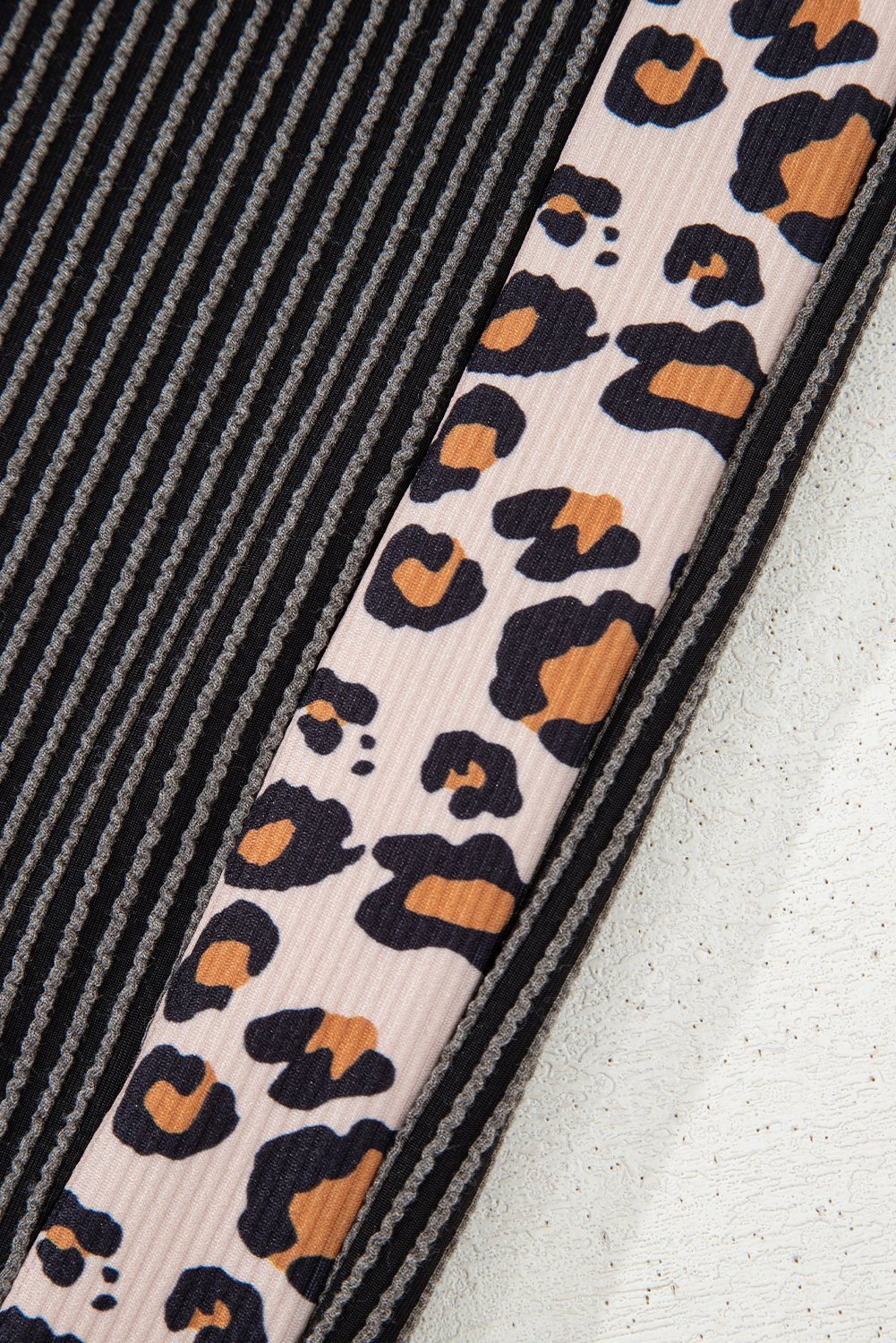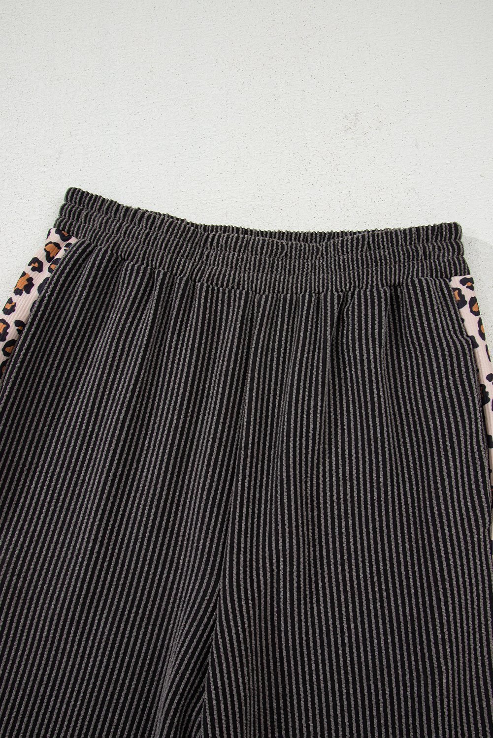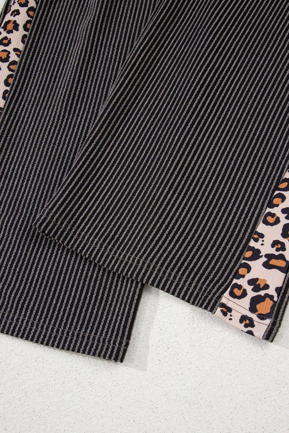 Be the first to review “Carbon Grey Leopard Patchwork Edge Twisted Rib T Shirt And Cropped Pants Set”
