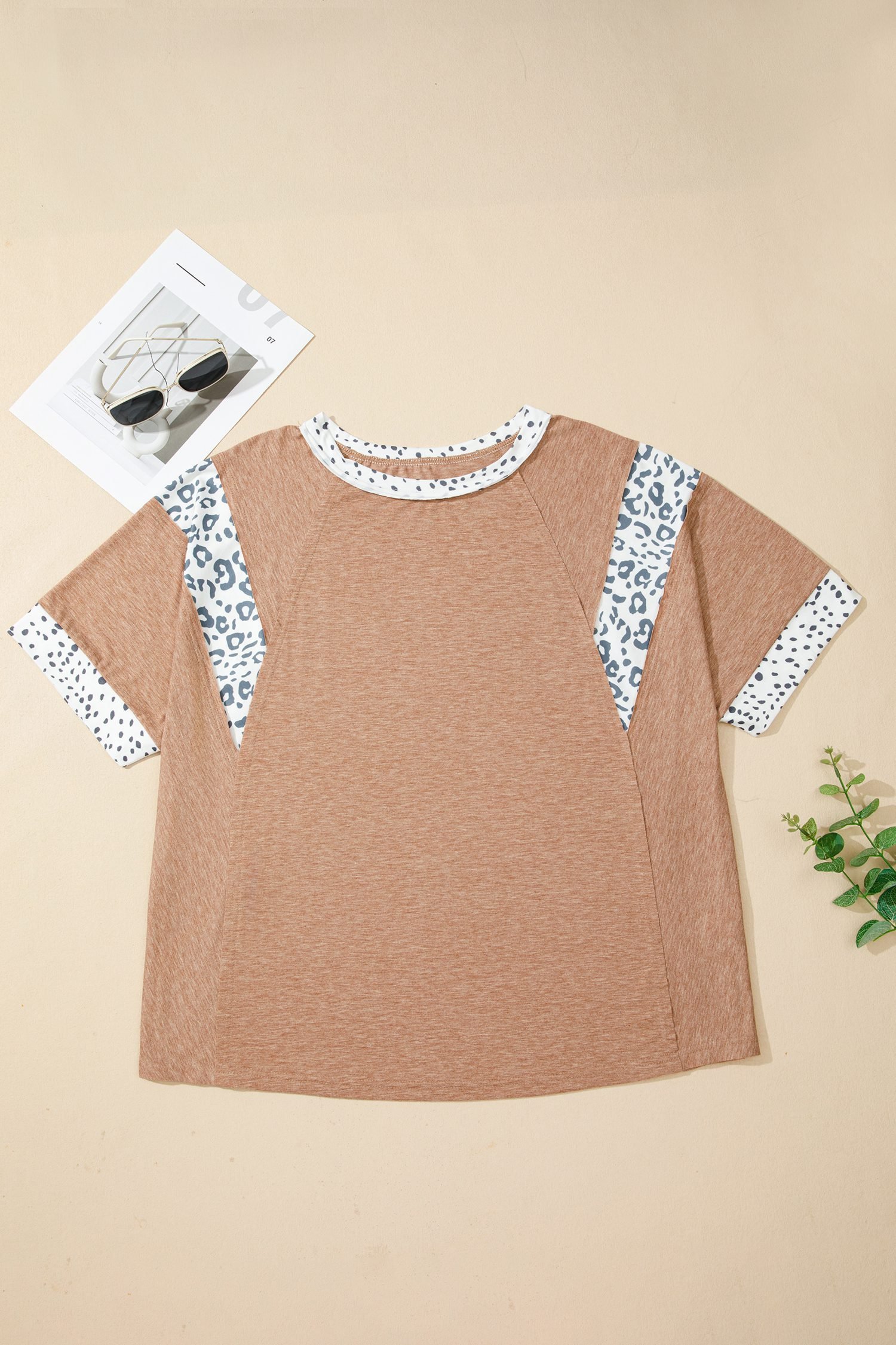 Animal color block patchwork adds bold style to this plus size women’s tee.