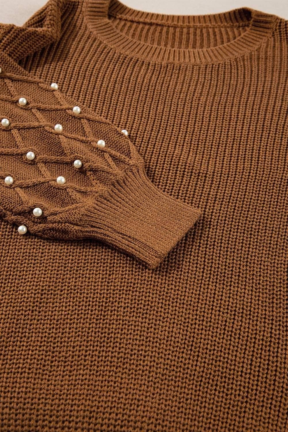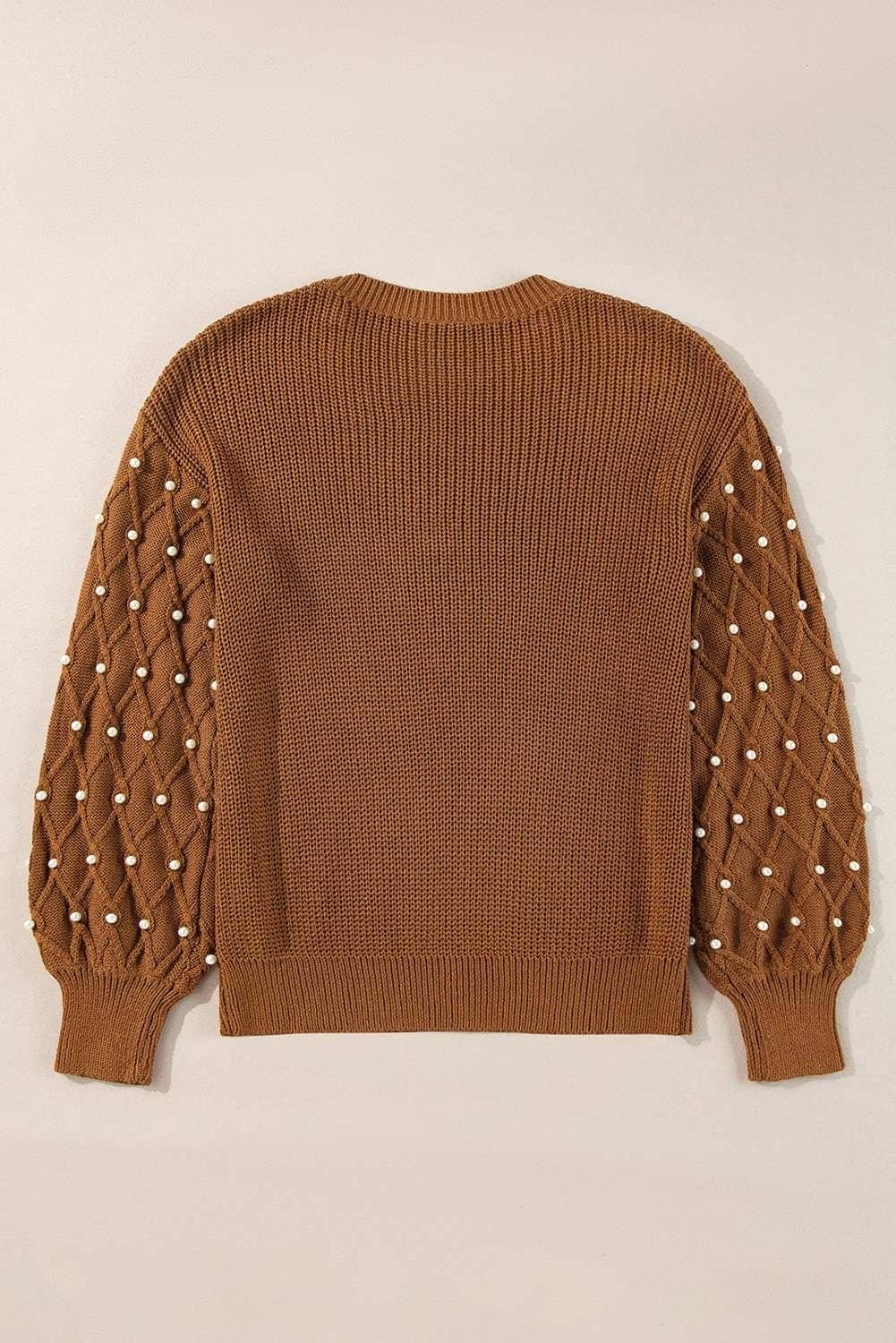 - The sweater is elegantly adorned with beaded details that add a touch of sparkle and sophistication.