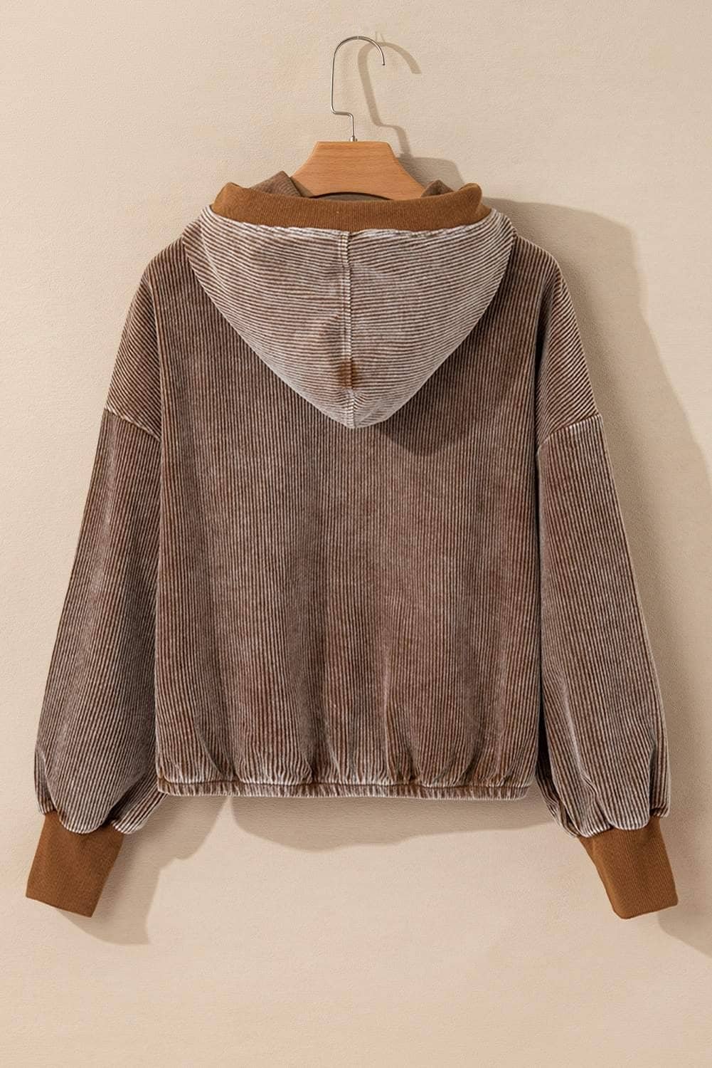- This textured hoodie offers a soft feel with corduroy fabric.