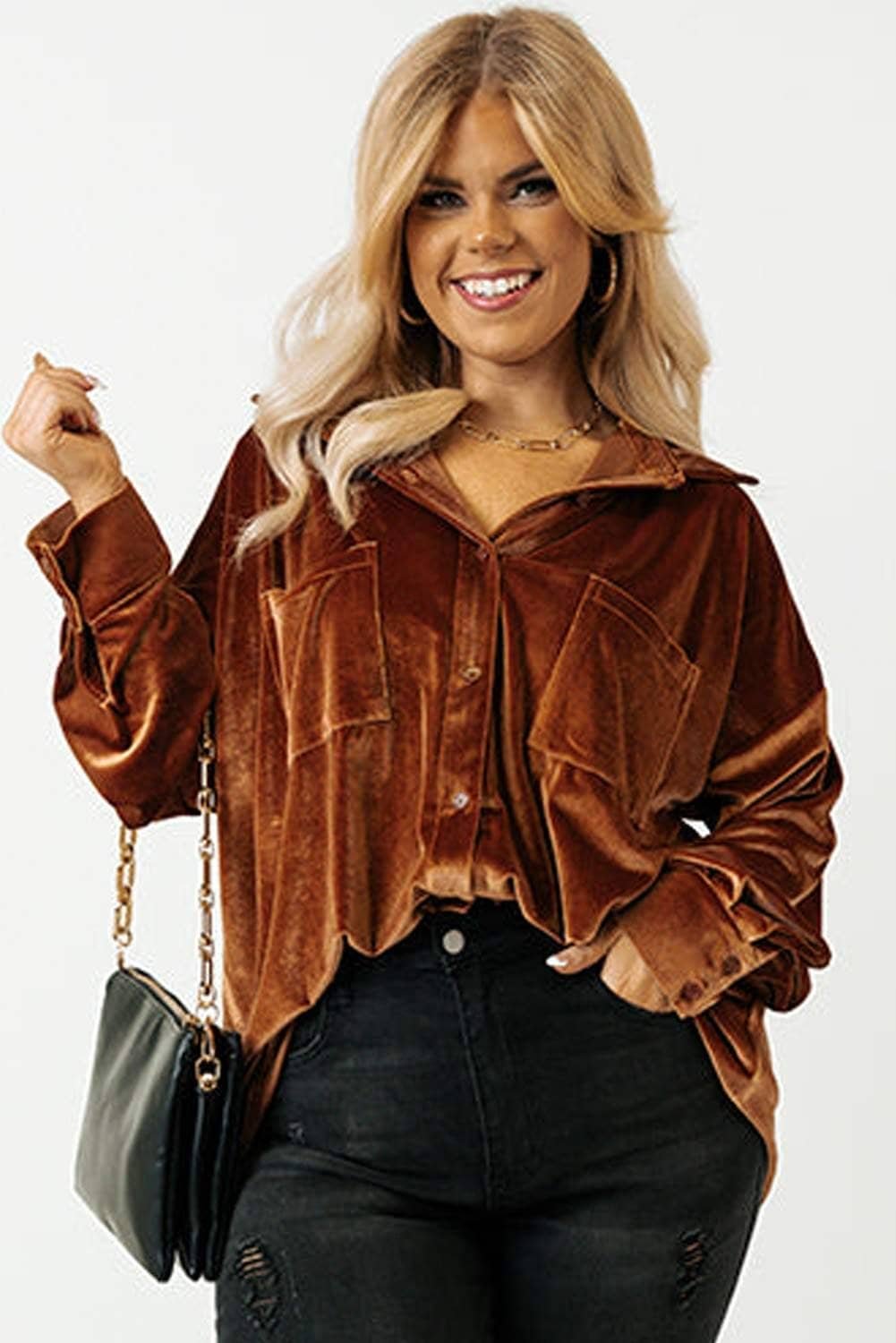 - This velvet shirt adds a touch of elegance with soft fabric.