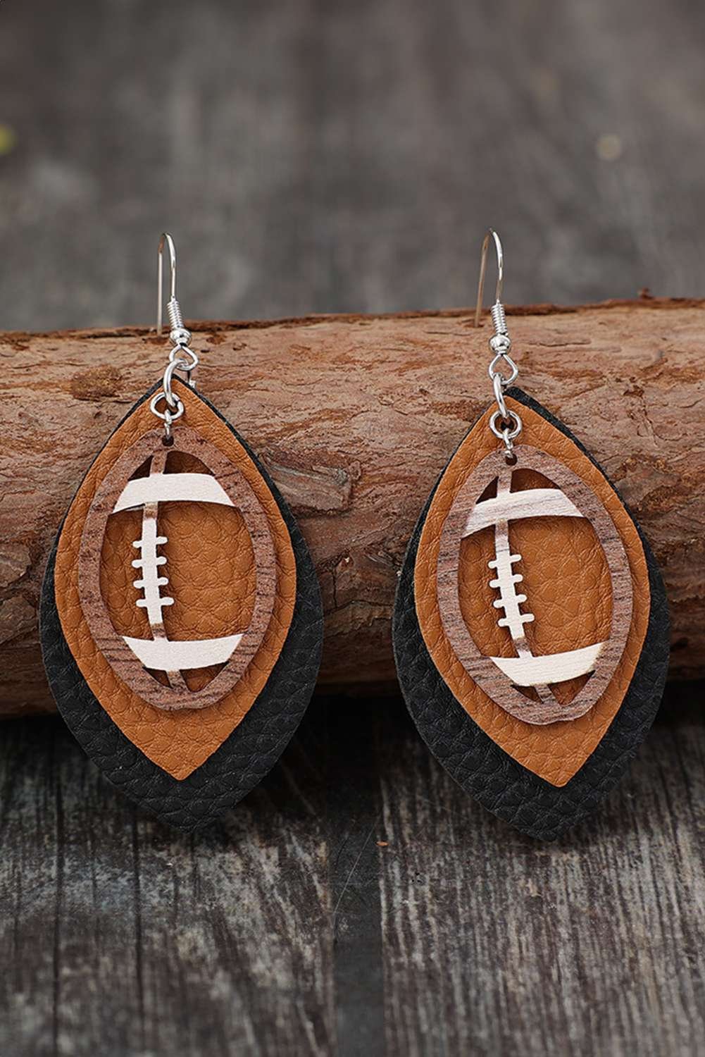 Chestnut Rugby Shape Pu Leather Drop Earrings