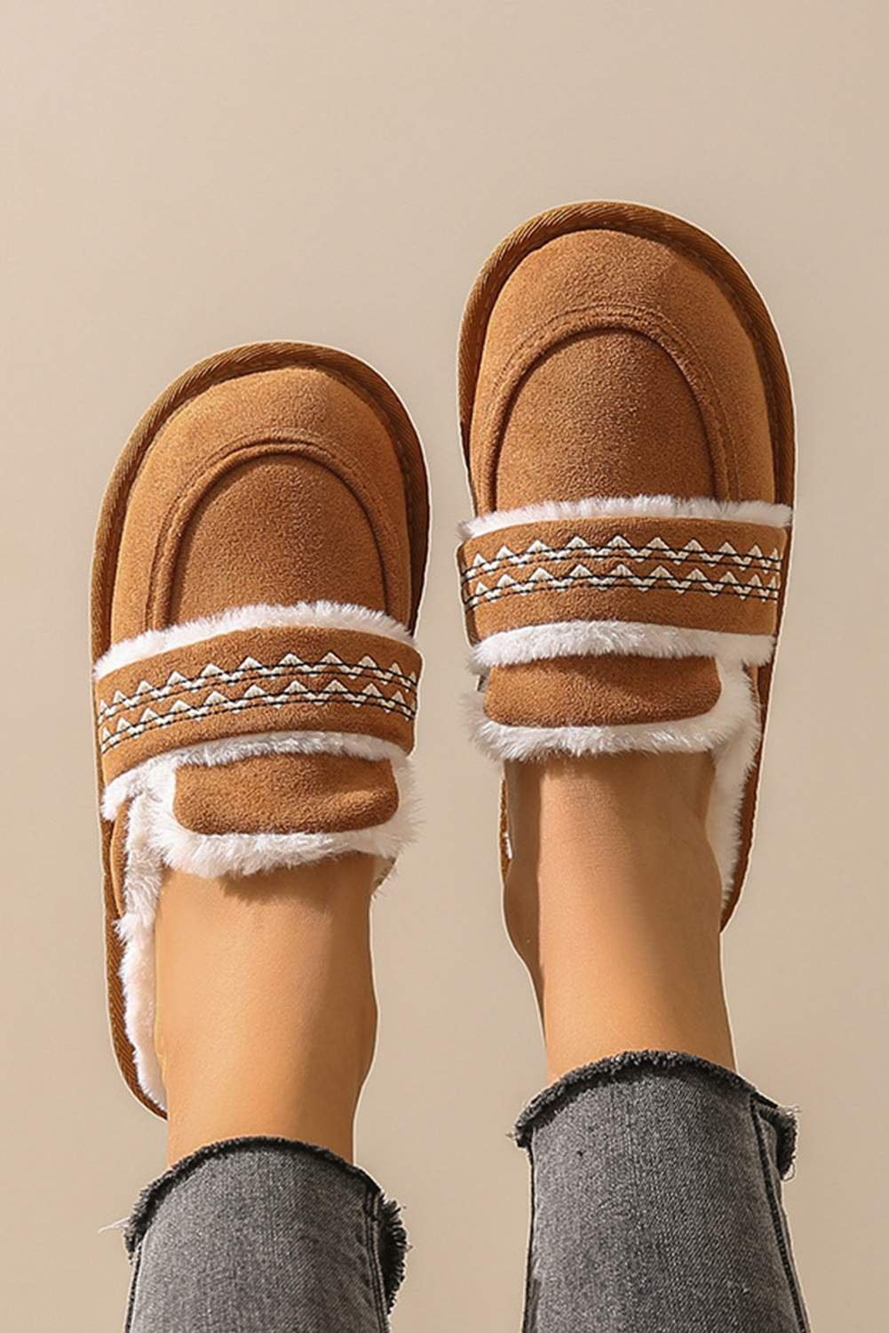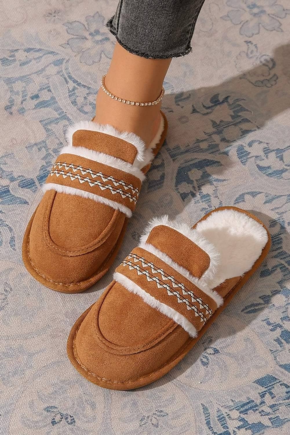 Chestnut Suede Wavy Striped Plush Lined Slippers (Run Small, Size Up)