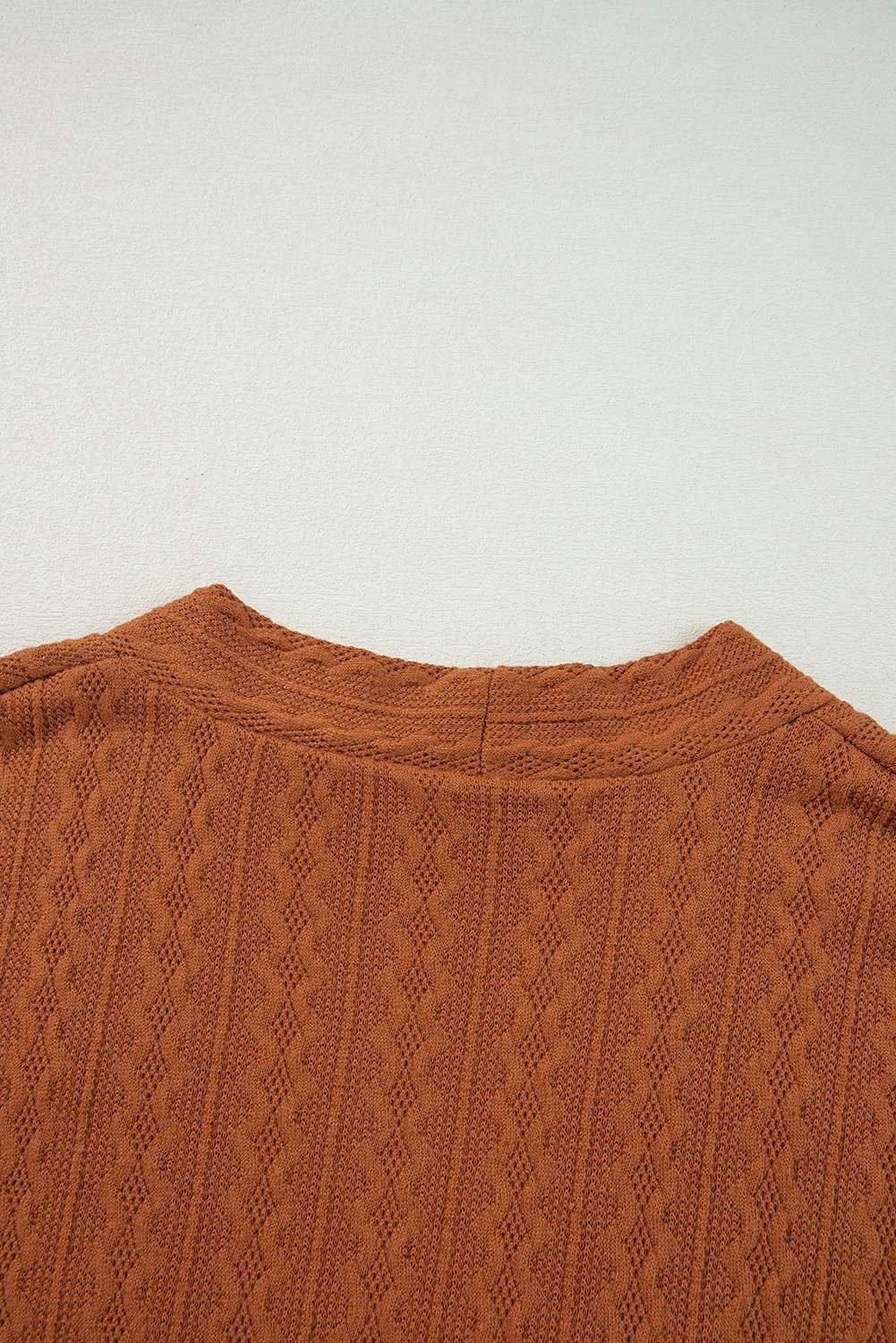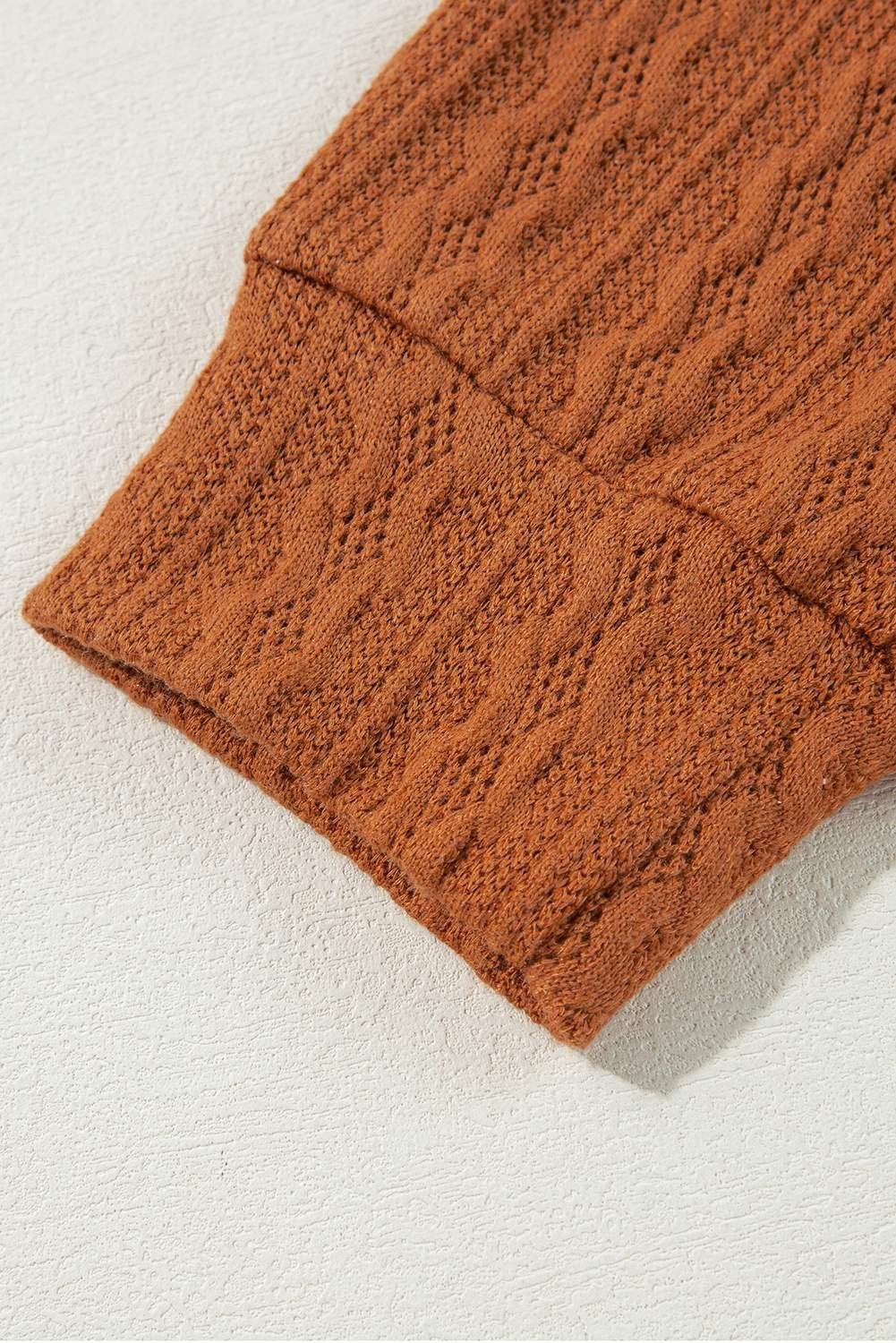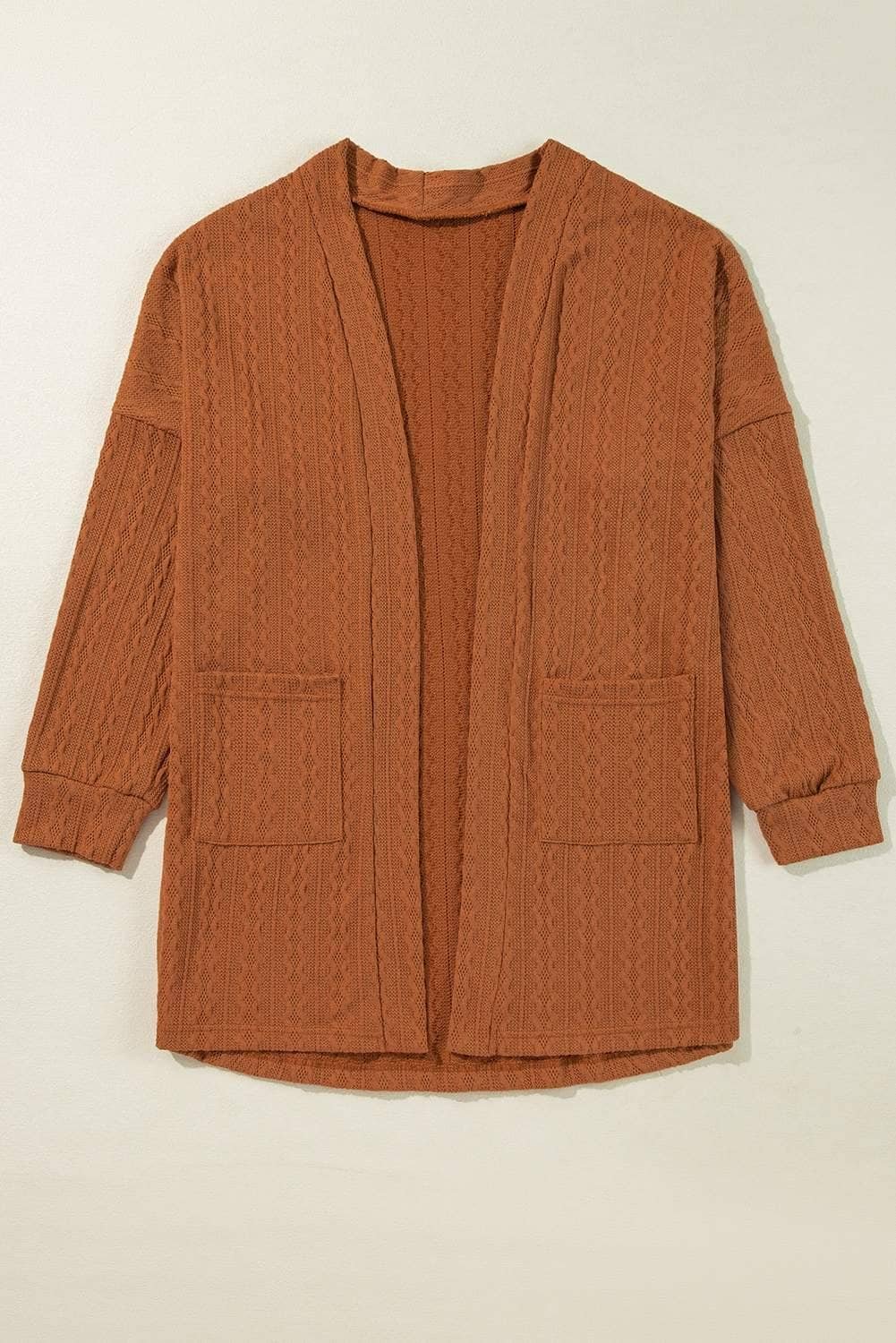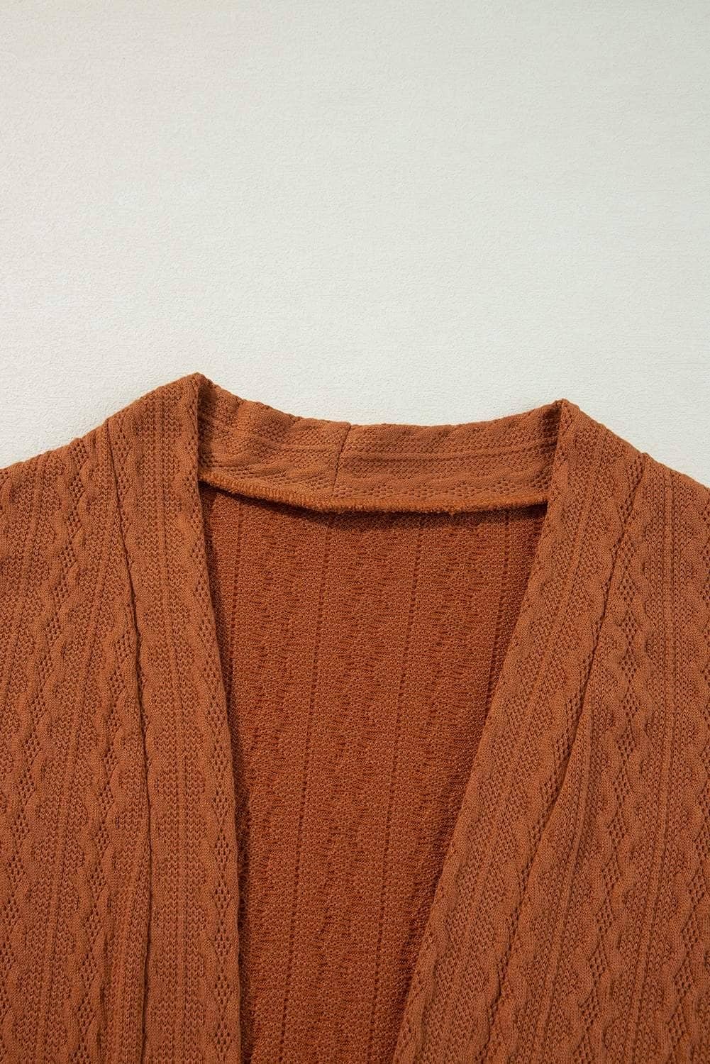 Chestnut Textured Knit Side Pockets Open Front Cardigan