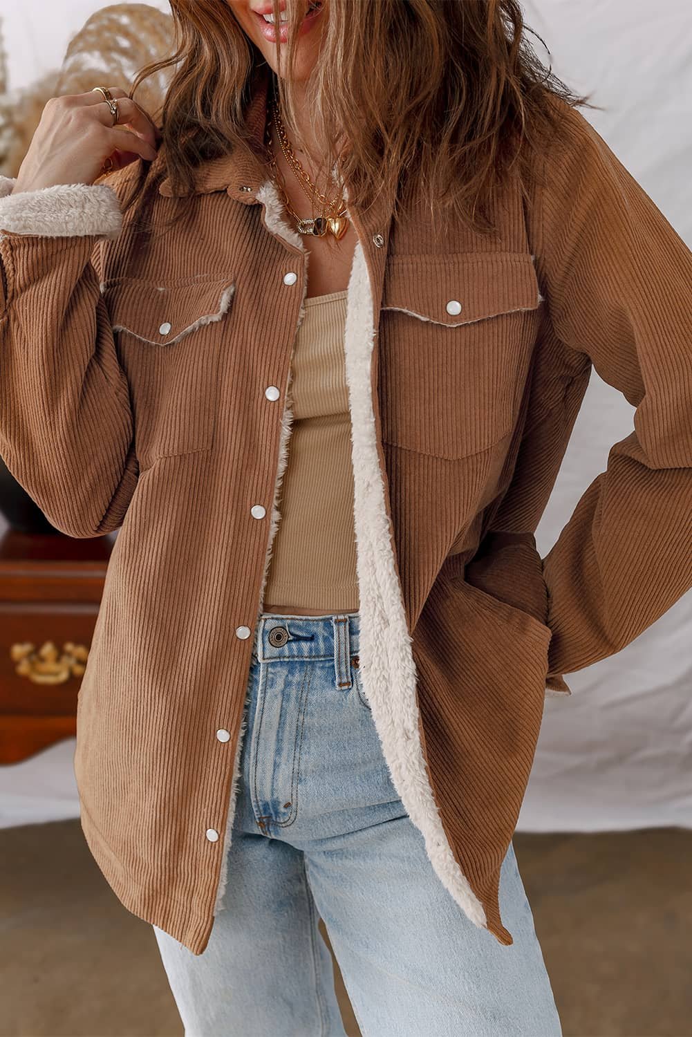 - This solid corduroy jacket with fleece lining is very thick and warm.