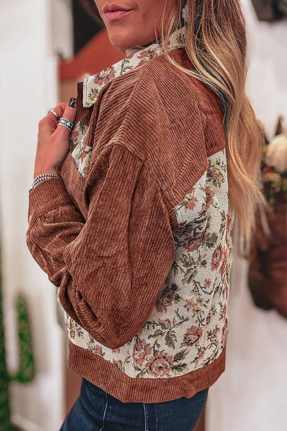 - Retro floral patchwork brings vintage charm to any casual outfit.