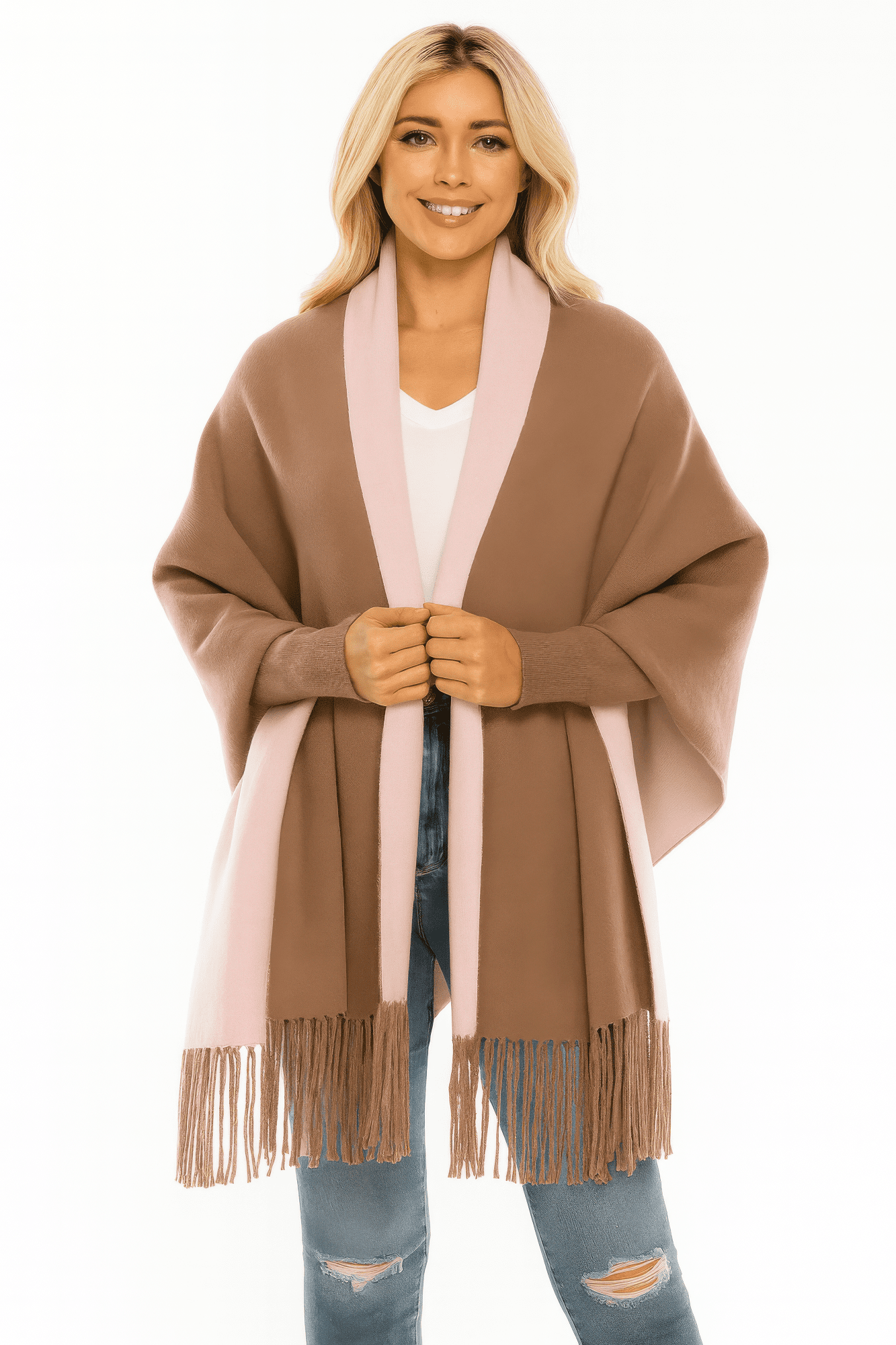 Colorblock Fringe-Trimmed Open Wrap-53715