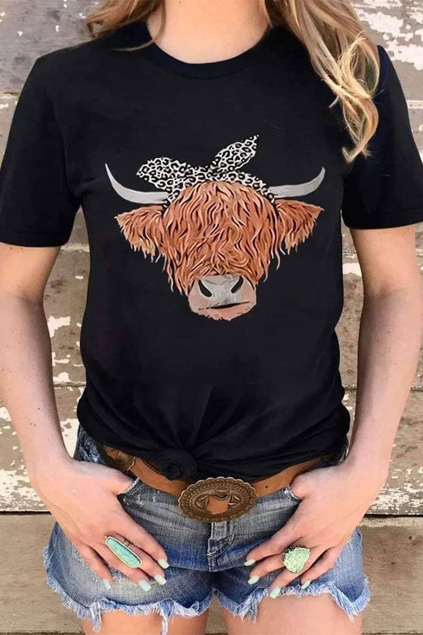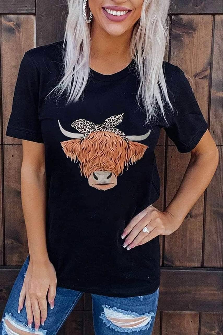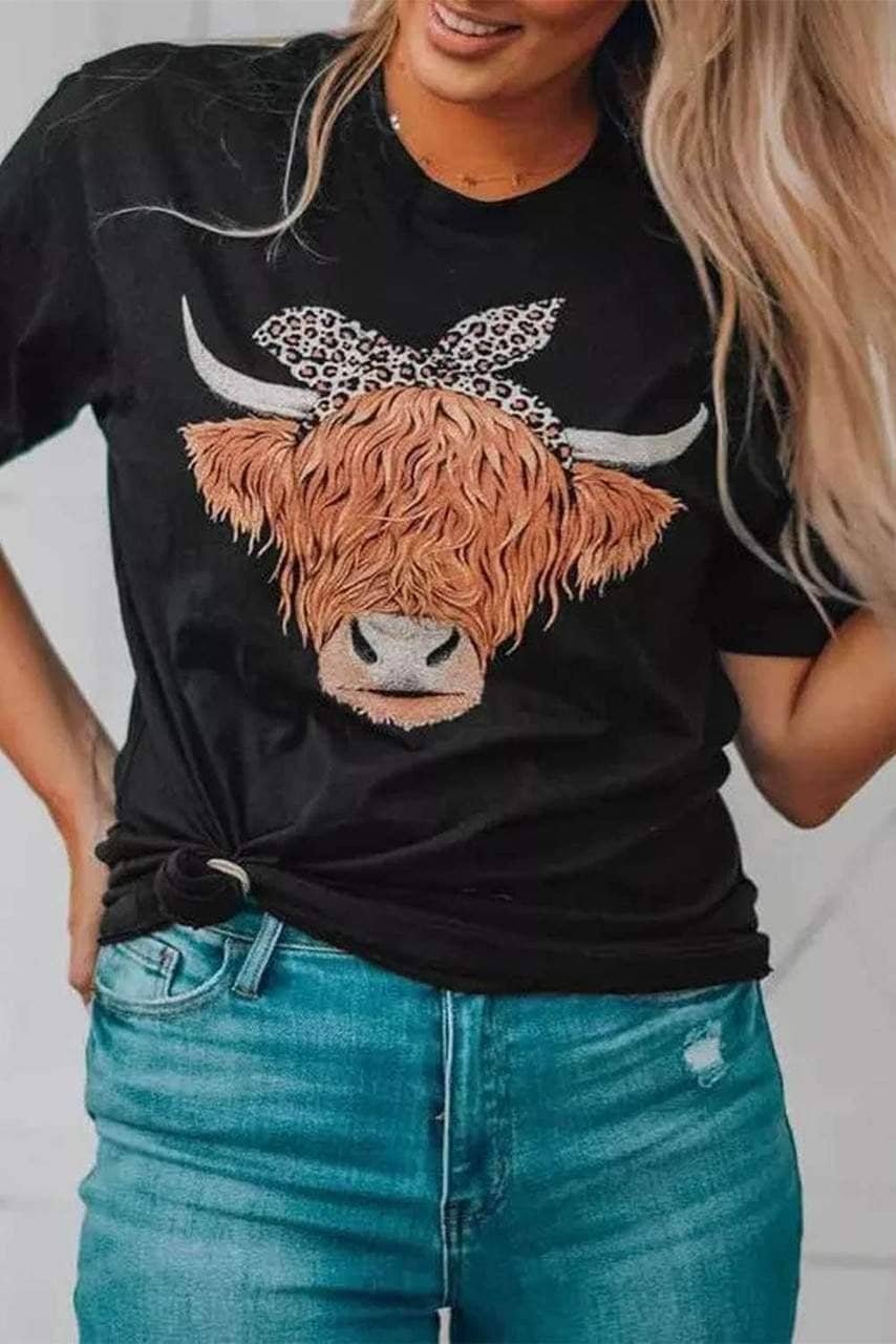 Cute Cattle Leopard O-Neck T-Shirt