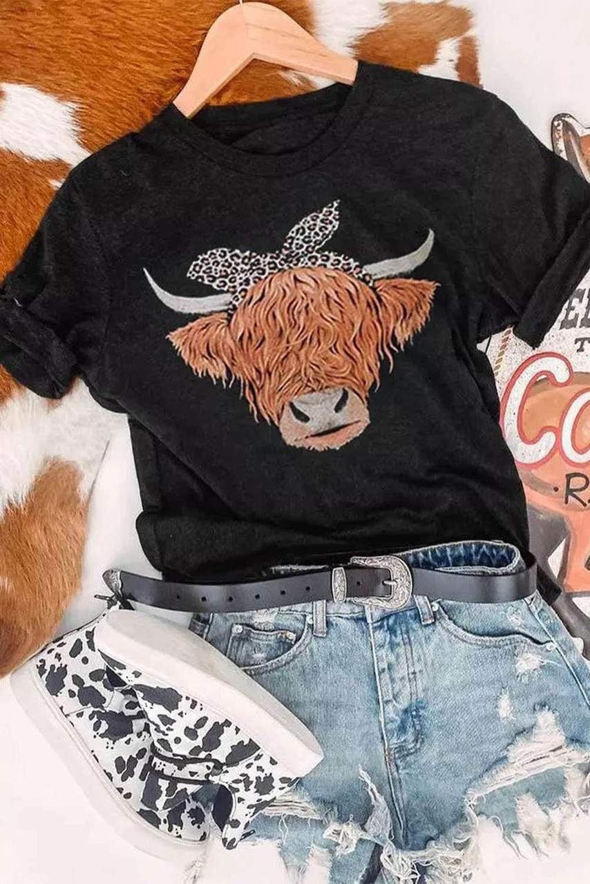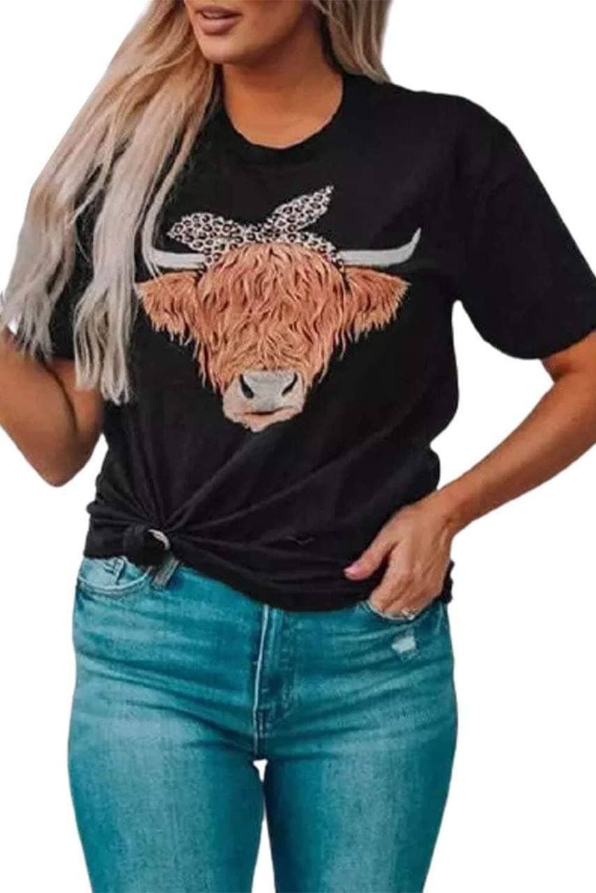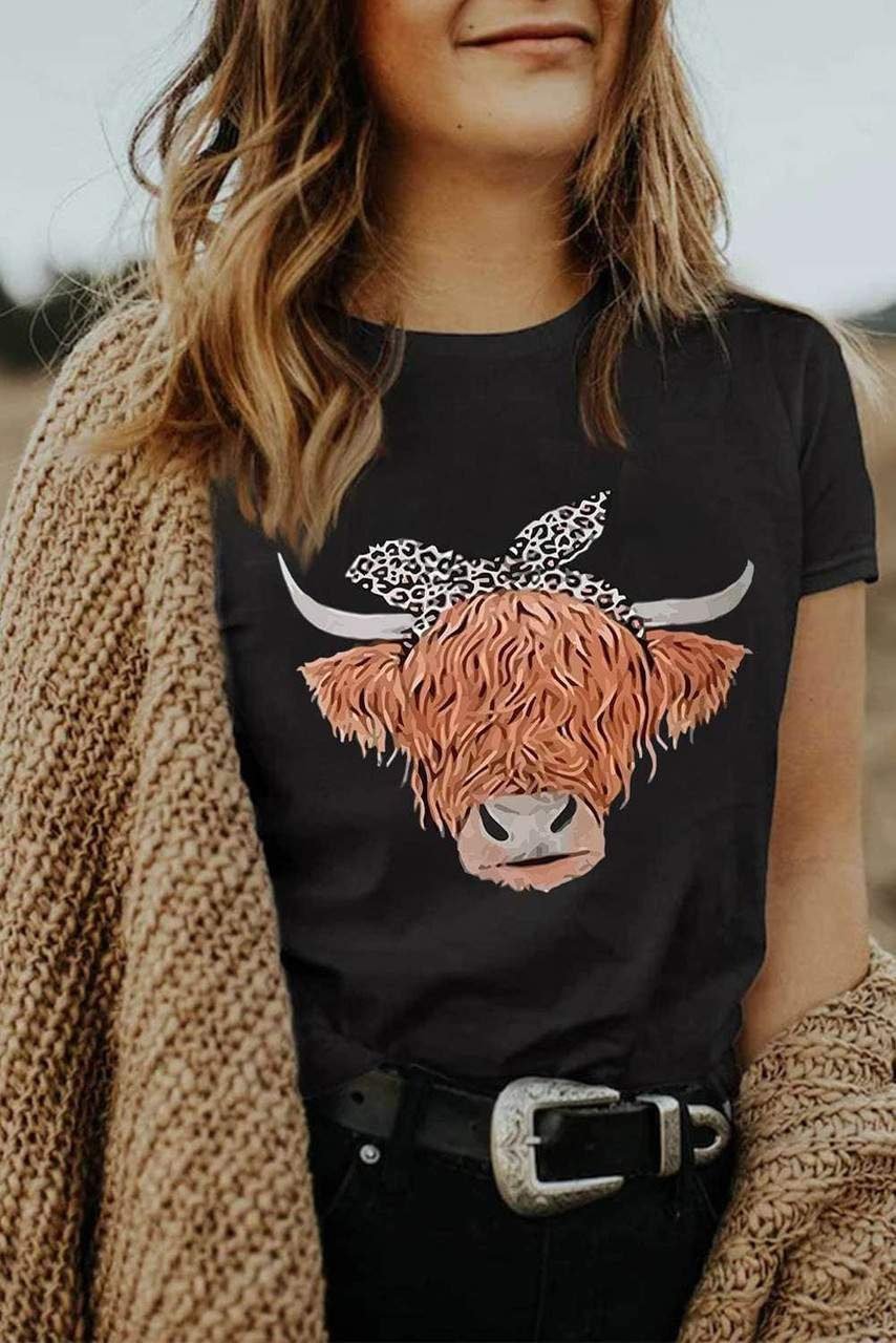 Cute Cattle Leopard O-Neck T-Shirt