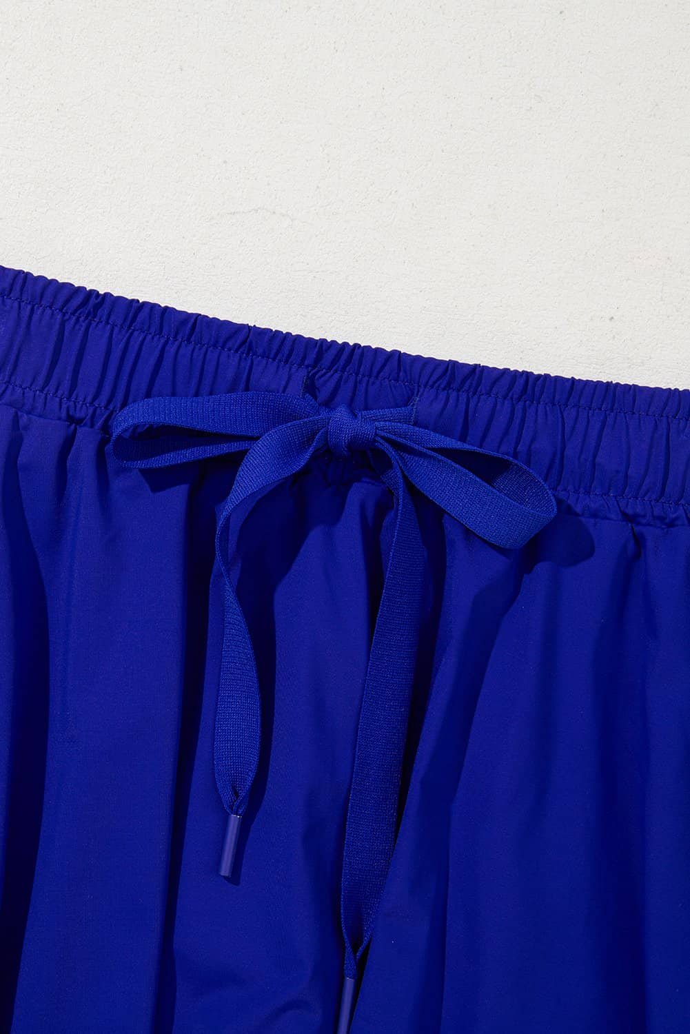 Dark Blue Drawstring High Waist Lined Tennis Skorts