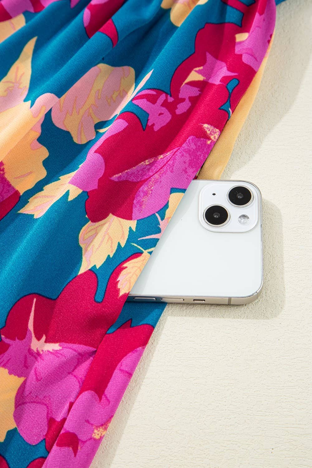 - Embrace a touch of nature with the vibrant floral print of this dress.