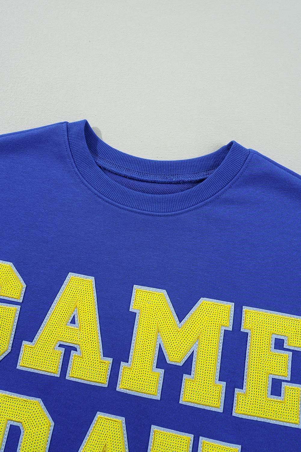- The sequin game day graphic makes this pullover sparkling and meaningful.