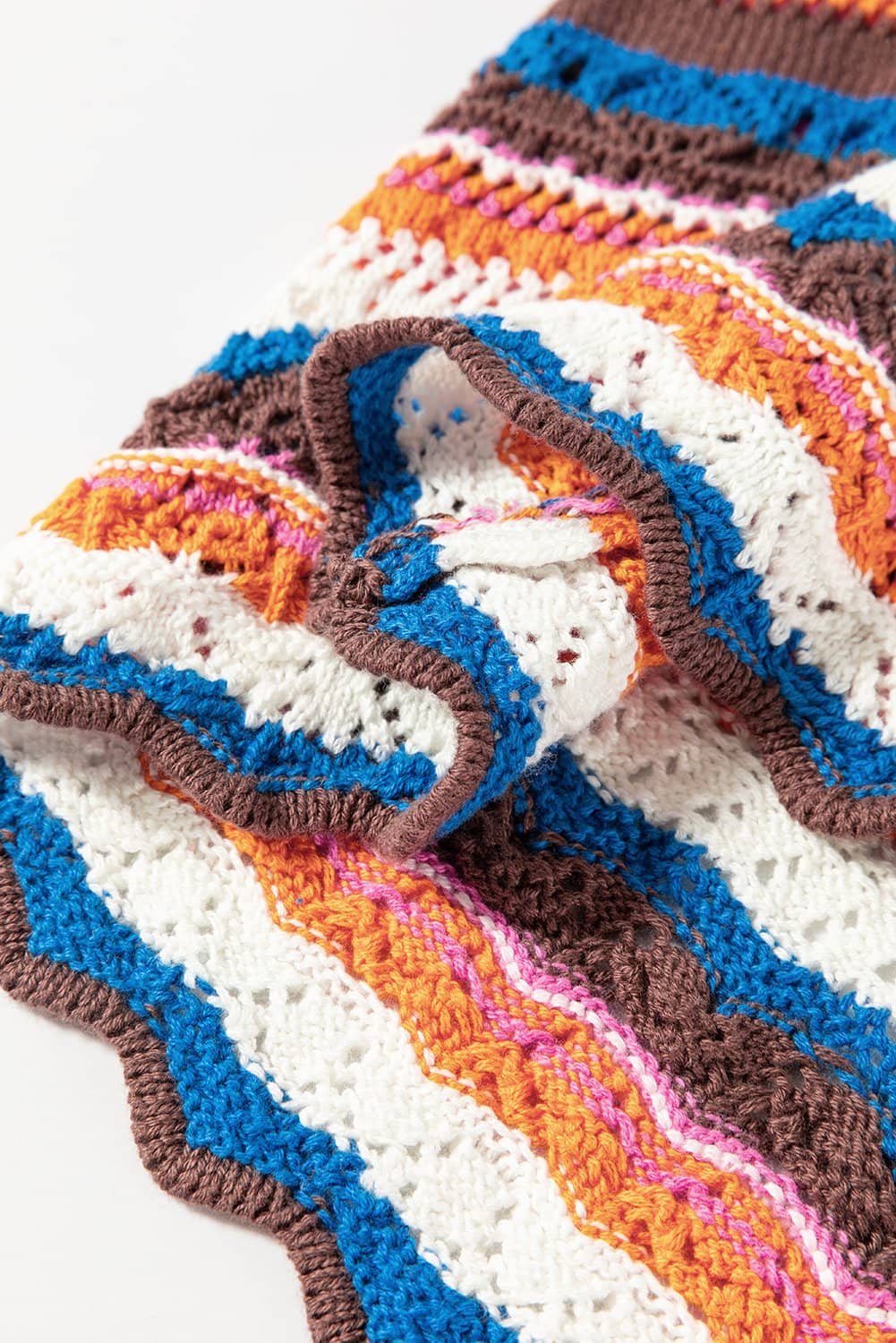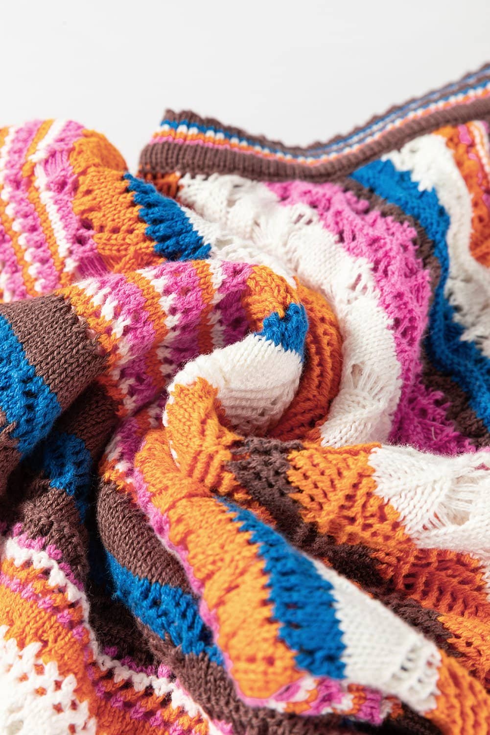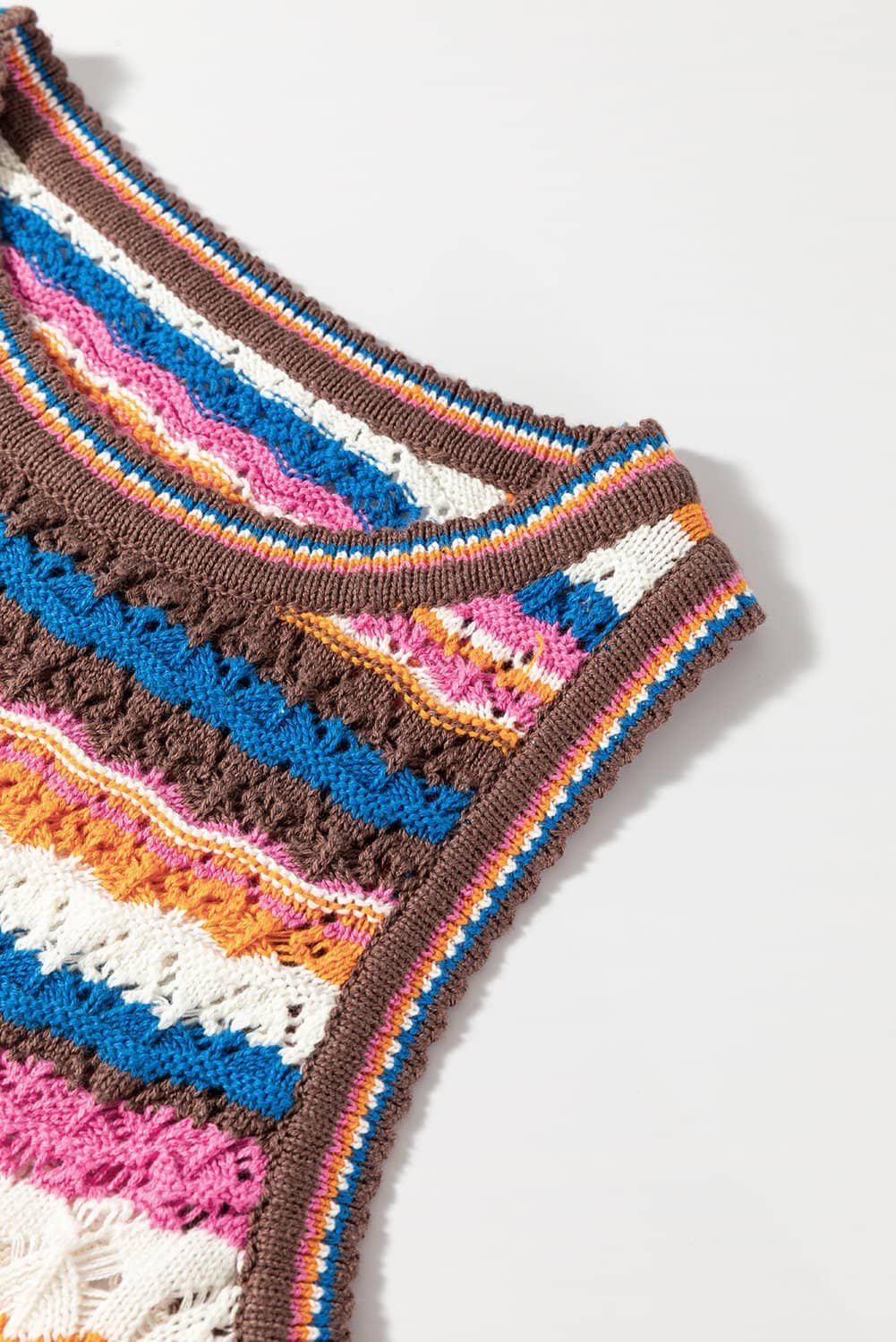Made with soft breathable yarn, this tank features a lively array of colors intricately woven into a stunning crochet pattern.