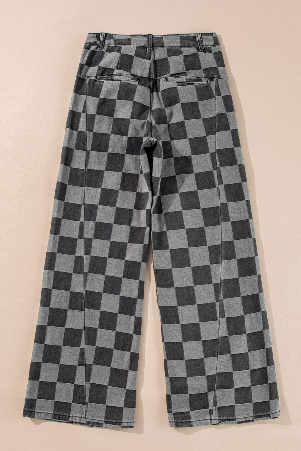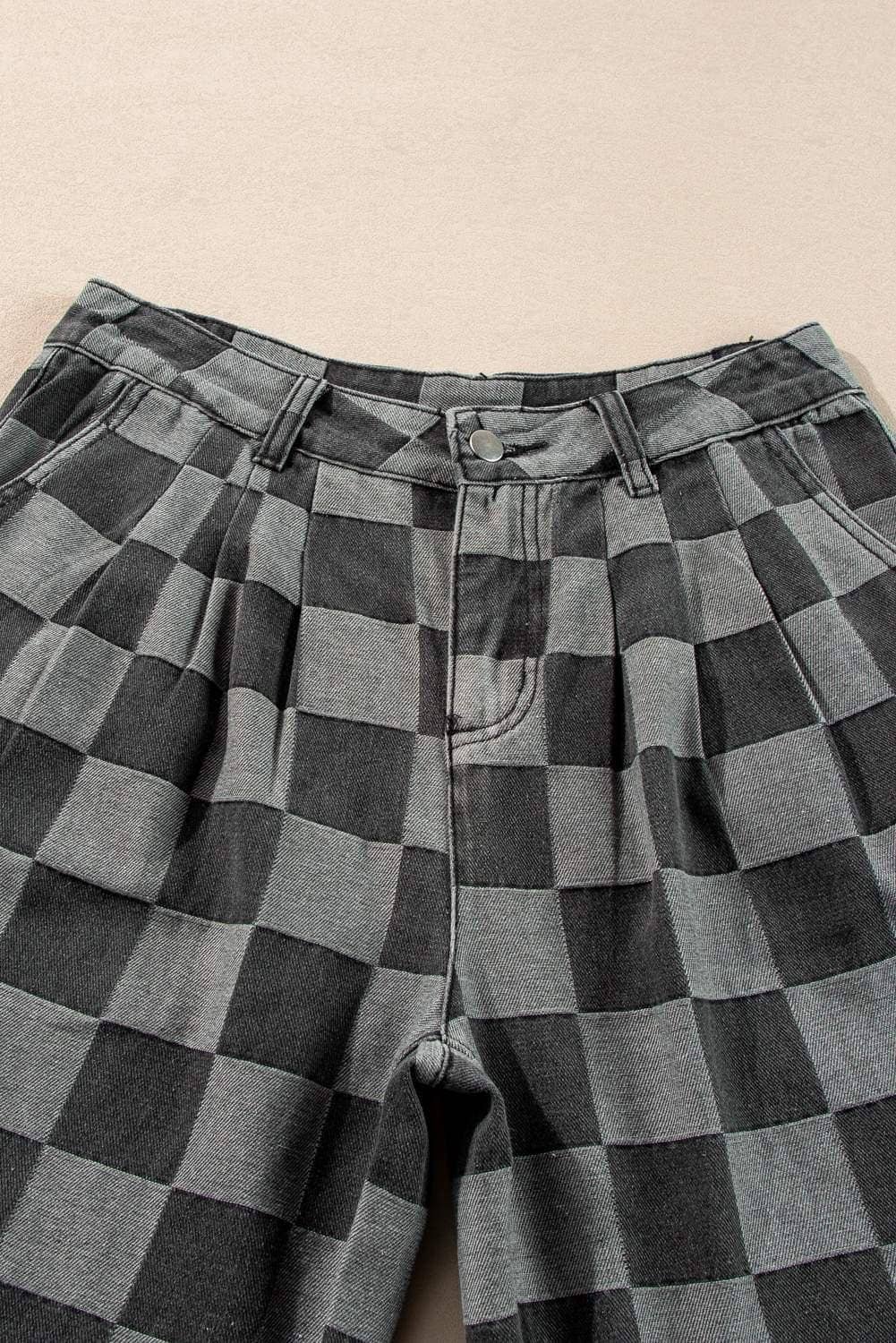 - These jeans showcase a distinctive checkered pattern that brings a classic and stylish look.