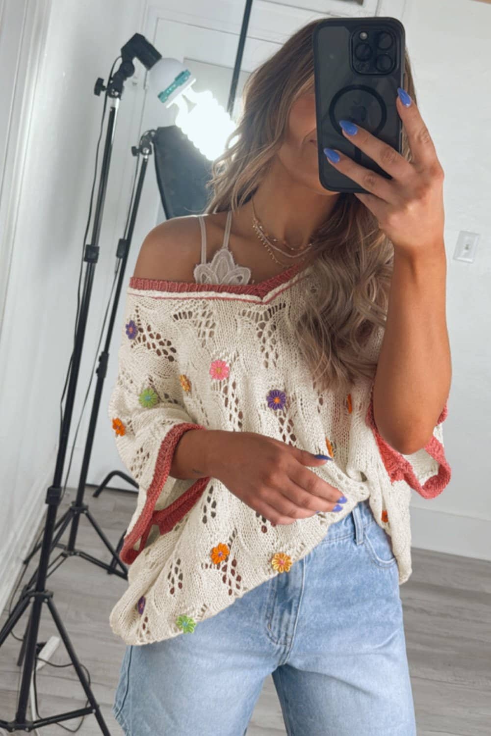- Unique sweater features intricate embroidered flowers for a charming and artistic look.