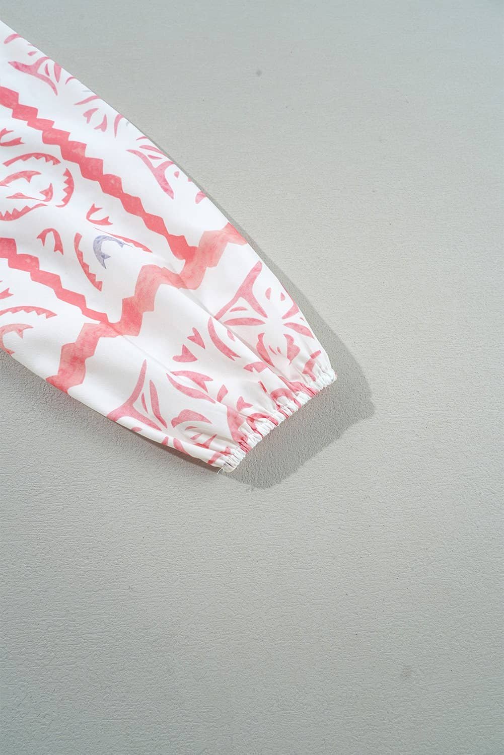 Be the first to review “Desert Flower Vintage Print Smocked Poet Collar Billowy Blouson Sleeves Blouse”