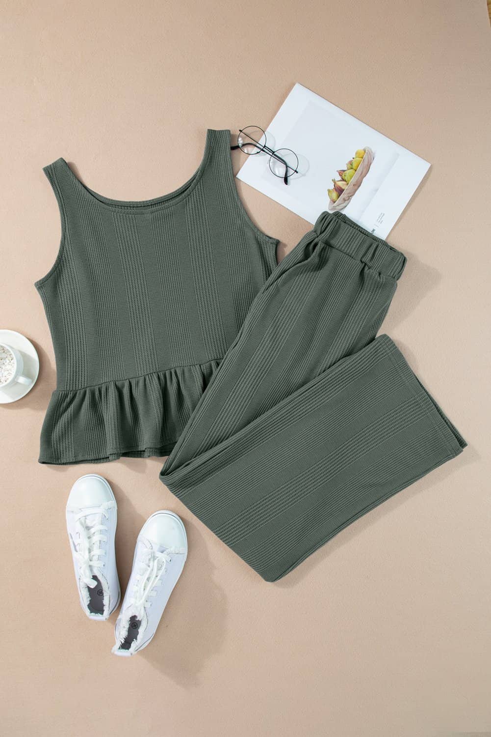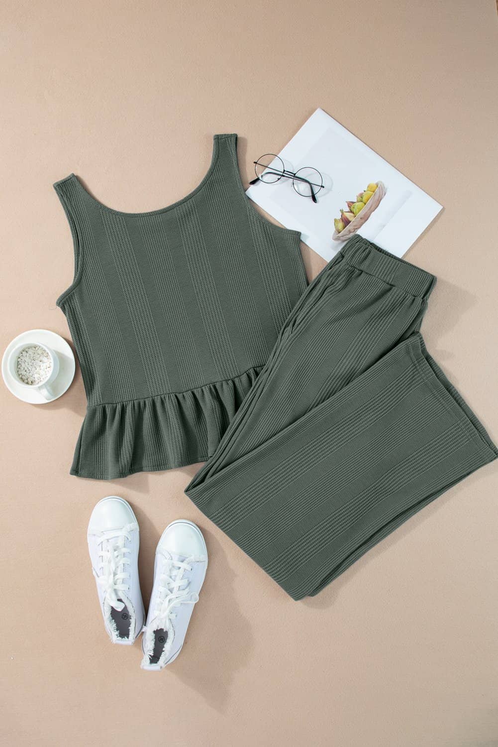 Add a feminine flair with a ruffled hem tank top that brings a playful and romantic vibe.