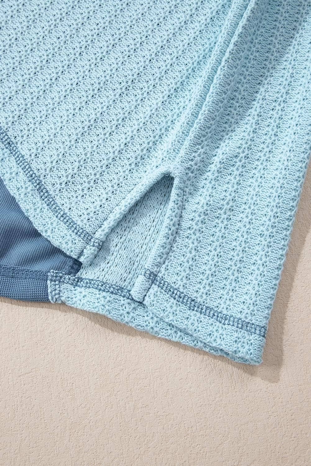Be the first to review “Dusk Blue Colorblock Stitching Patchwork Buttoned Long Sleeve Top”