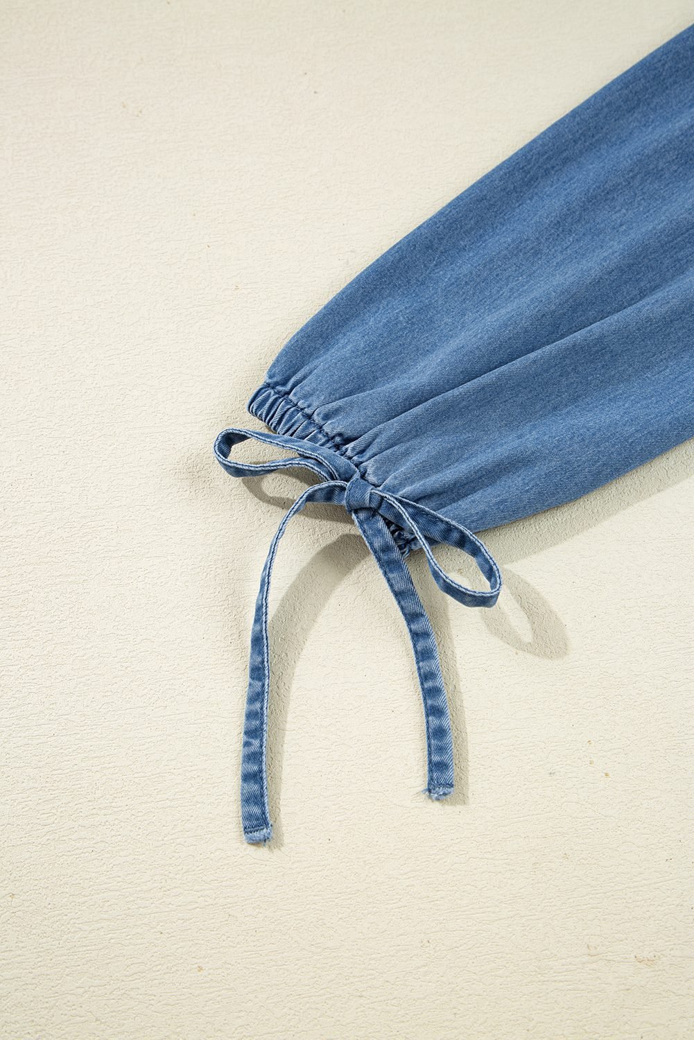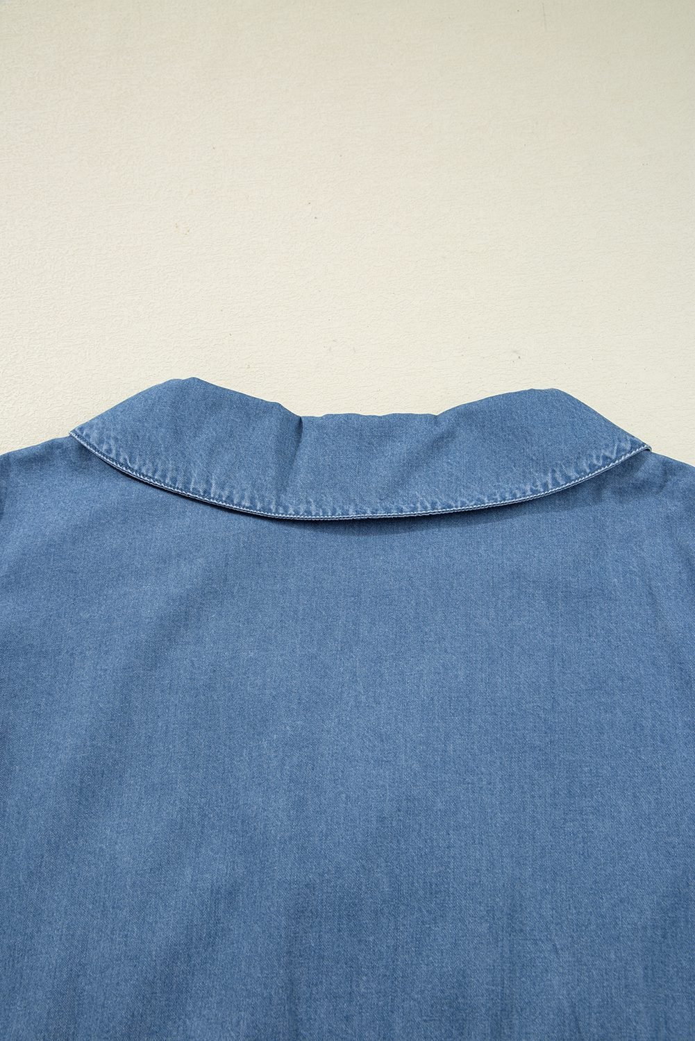 Be the first to review “Dusk Blue Denim Lapel Neck Balloon Sleeve Tied Peplum Top”