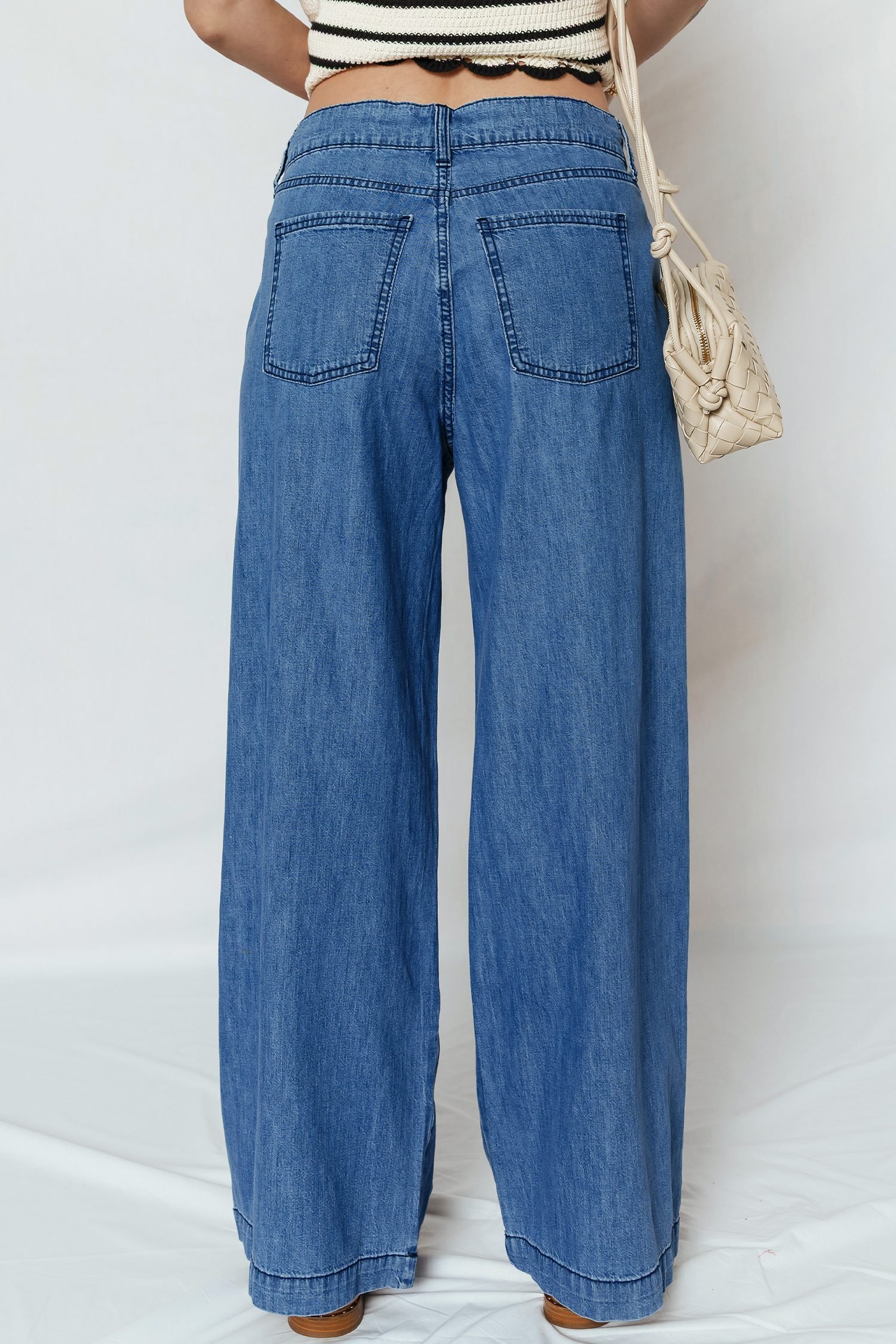 Wide leg silhouette creates a relaxed, fashion-forward denim look.