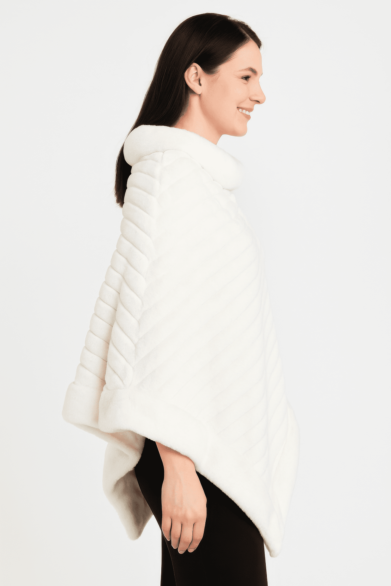 Product Description: Elevate your cold-weather wardrobe with the Elegant Faux Fur Winter White Poncho — a timeless piece that blends sophistication with cozy luxury. Designed in a pristine winter white hue, this poncho exudes refined elegance while keeping you warm and comfortable. The plush faux fur texture and soft diagonal ribbed design create a graceful drape that flatters every silhouette. Perfect for layering over your favorite outfits, this chic poncho transitions effortlessly from daytime outings to elegant evening events. Product Details: Made from 100% Acrylic Ultra-soft faux fur texture for warmth and comfort Diagonal ribbed pattern adds dimension and style Relaxed, flowy fit for easy layering Pullover design for effortless wear Ideal for fall and winter, travel, or special occasions Size Guide: For accurate sizing guidance, please review our size chart available on the website. Shipping and Returns: Fast Shipping: We offer speedy delivery to your doorstep. Hassle-Free Returns: If you’re not completely satisfied, our flexible return policy ensures your peace of mind.