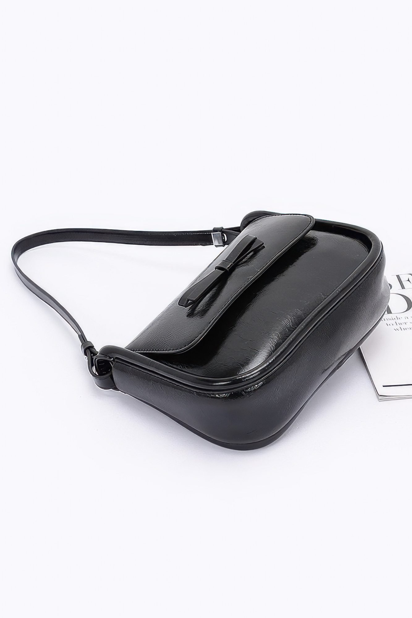Enhance your accessory collection with our Faux Leather Bow Flap Bag, a stylish and feminine piece designed to add a touch of elegance to any outfit. Crafted from high-quality faux leather and featuring a charming bow detail, this bag combines both modern and classic design elements to create a perfect statement piece. Key Features: Fabric: Made from durable polyurethane faux leather, providing a sleek and soft finish, with mixed metal accents that add a touch of sophistication.Dimensions: 9W x 6H x 3DColor Options: Black, Blue, Ivory, PinkDesign: Featuring a distinctive bow flap closure that adds a playful yet chic touch, complemented by polished mixed metal hardware for a refined look.Versatile Styling: This compact bag is perfect for both casual outings and more formal occasions, effortlessly complementing a variety of outfits, from dresses to jeans. Product Details:Comfortable All-Day Wear: The lightweight design and adjustable strap make it easy to carry, while the compact size ensures you can keep your essentials close without the bulk.Quality Craftsmanship: Carefully crafted from high-quality faux leather, this bag is designed to be both stylish and durable, with attention to detail in every stitch and accent. Why Choose Faux Leather Bow Flap Bag This bag stands out with its delicate bow detail, offering a unique twist on classic handbag designs. The faux leather feels luxurious yet is easy to maintain, and the compact size makes it ideal for when you only need to carry the essentials. Whether you’re heading to a lunch date or a night out, this bag adds a fun and fashionable touch to your look. Ideal Occasions: Perfect for evening events, brunches, or a stylish day out, this bag is versatile enough to pair with both casual and dressy outfits.