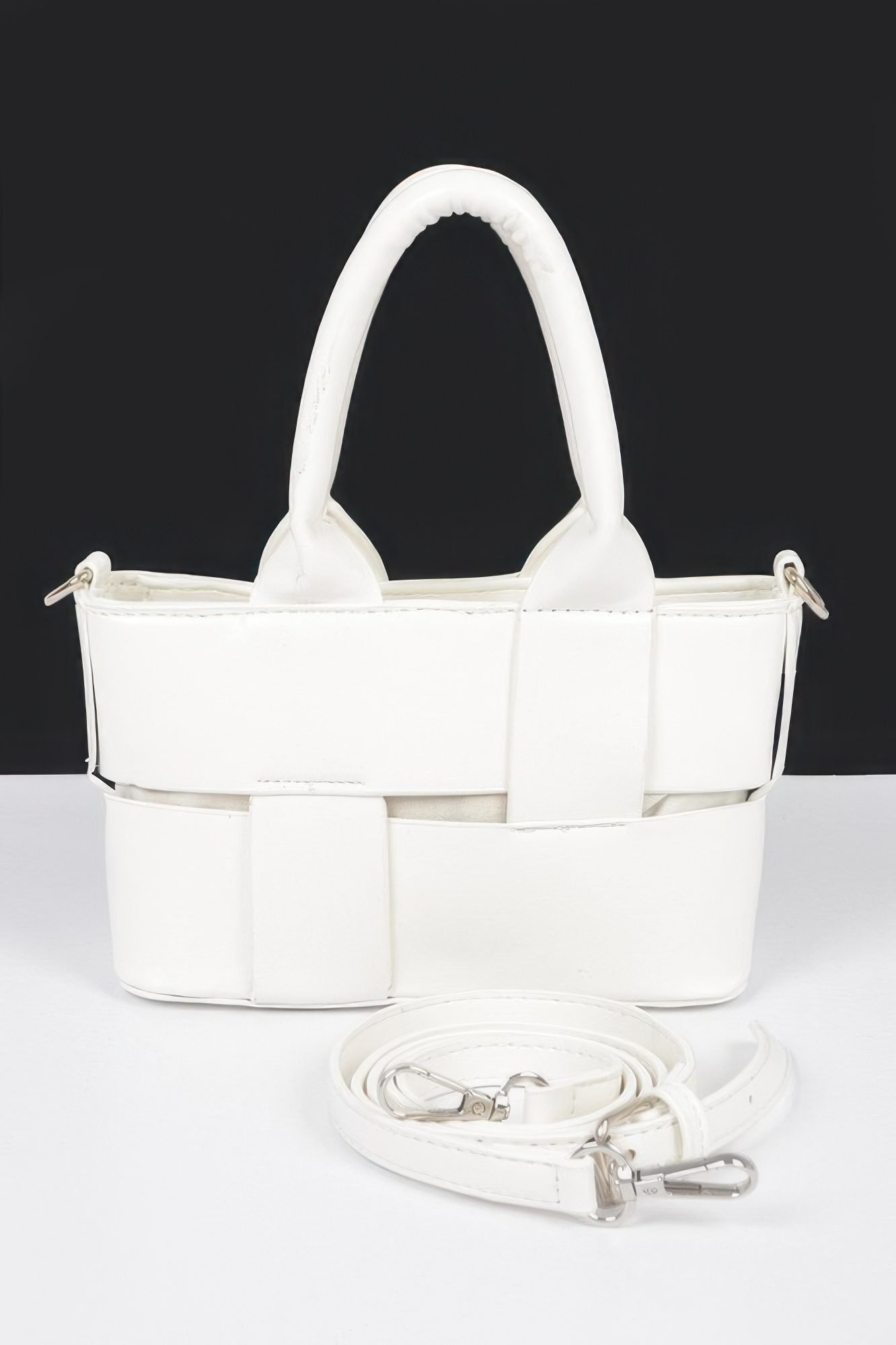 The Faux Leather Braided Small Tote Bag blends compact structure with intricate texture. Designed with a braided exterior and a clean silhouette, this tote delivers a touch of artisanal detail in a small, stylish package. Made from smooth polyurethane and finished with mixed metal accents, it’s built to be both durable and chic. Its mini size makes it perfect for carrying essentials without the bulk. Ideal for daytime errands or casual weekend looks.