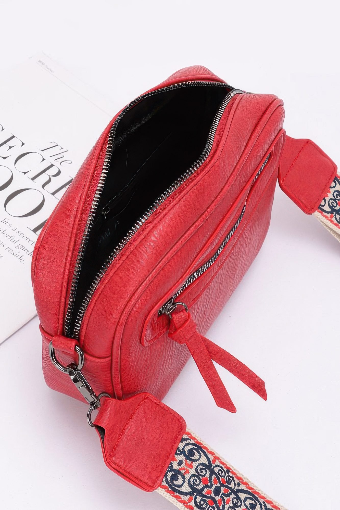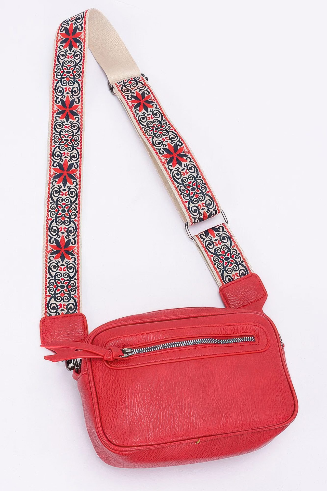 Upgrade your accessory game with our Faux Leather Camera Bag with Multi-Color Strap. Combining a sleek, modern design with a vibrant multi-color strap, this bag is the perfect blend of style and function, ideal for carrying your essentials in a chic and organized way. Key Features: Fabric: Crafted from durable polyurethane with a smooth faux leather finish, paired with mixed metal accents for added style Fit: Compact yet spacious enough to hold your phone, camera, and other essentials Color Options: Black, Camel, Olive, Red Sizes: Approximate dimensions of 10″ W x 7″ H x 3.5″ D Design: Features a bold multi-color strap that adds a playful, modern twist to the classic camera bag design Versatile Styling: Ideal for pairing with both casual and dressy outfits, this bag offers a pop of color to complement your style Product Details: Comfortable All-Day Wear: The adjustable multi-color strap ensures a comfortable fit for all-day wear, making it perfect for hands-free convenience Quality Craftsmanship: Designed with high-quality faux leather and mixed metal accents, this bag combines durability with chic style Why Choose Faux Leather Camera Bag with Multi-Color Strap This bag offers a functional yet fashionable solution for carrying your essentials. The vibrant multi-color strap adds a trendy touch, while the sleek faux leather design keeps it versatile enough to complement various outfits. Ideal Occasions: Perfect for casual outings, travel, or weekend adventures, this bag is a stylish addition to any outfit