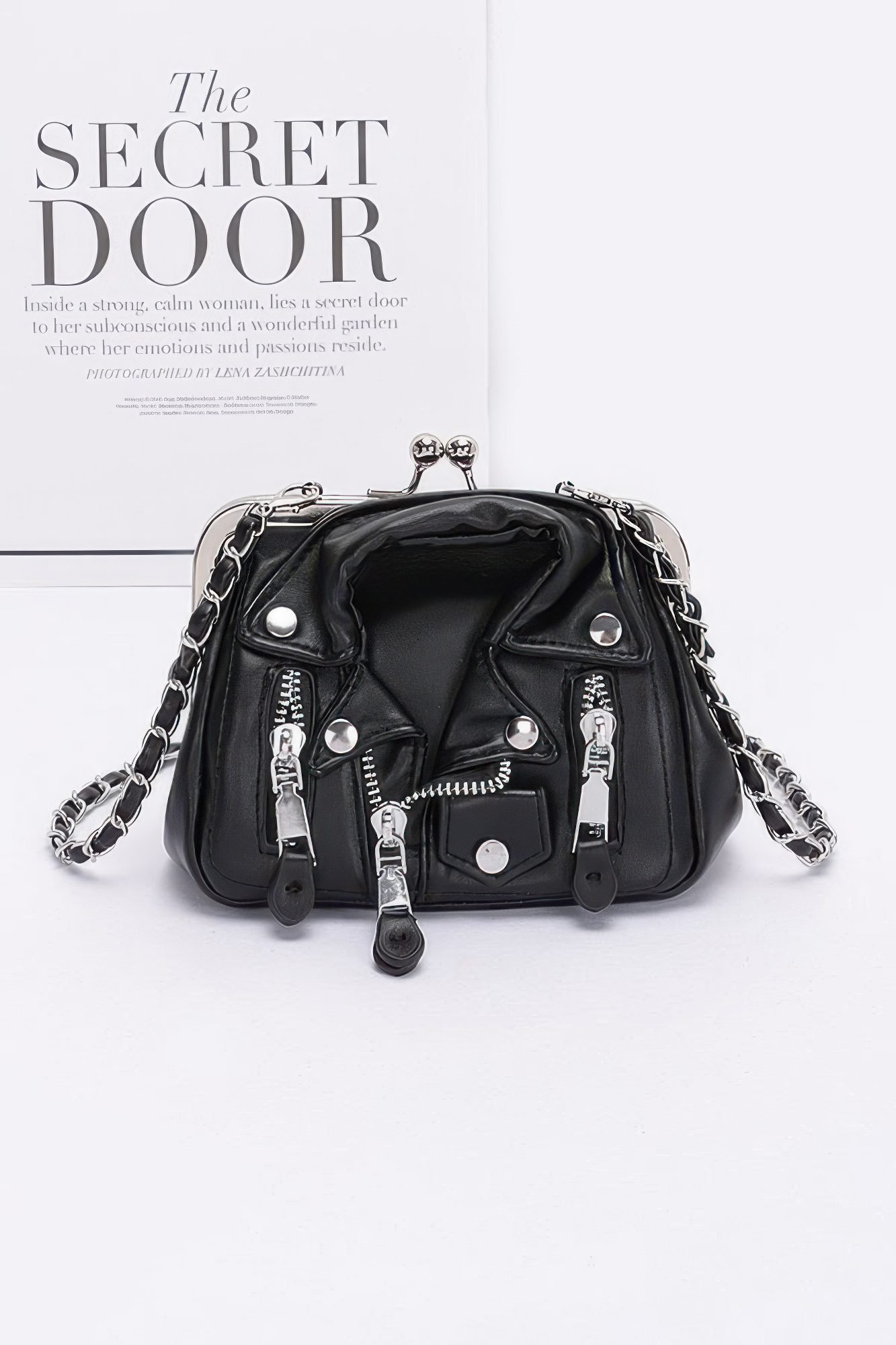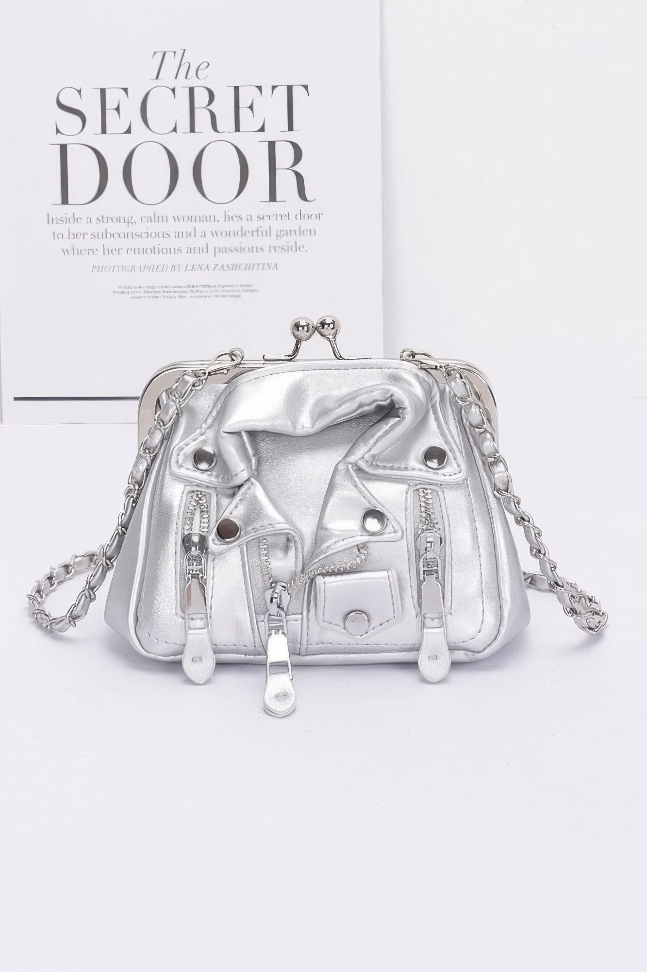 Elevate your accessory game with the Faux Leather Jacket Style Crossbody Bag, a perfect blend of edgy style and practical design. This chic, compact bag is the ideal accessory for adding a bold touch to any outfit, while keeping your essentials secure and organized. Key Features: Fabric: Crafted from high-quality polyurethane, this faux leather bag offers a luxurious look and feel. The mixed metal accents enhance the bag’s overall design, adding a modern and stylish edge. Fit: Compact yet spacious, designed to hold your essentials such as your phone, keys, and small wallet while remaining sleek and functional. Color Options: Available in four stunning color combinations: Black Gold, Black Silver, Gold, and Silver, giving you plenty of options to match your personal style. Size: 6W x 5H x 3D, offering a small yet functional size that can be worn comfortably as a crossbody bag. Design: Features a unique jacket-style design with a zipper detail and mixed metal hardware for an added touch of sophistication and style. Versatile Styling: Whether you’re dressing up for a night out or keeping it casual, this bag is the perfect accessory to complement your look. Product Details:Comfortable All-Day Wear: The Faux Leather Jacket Style Crossbody Bag is designed for comfort and convenience, allowing you to carry it effortlessly throughout the day or night.Quality Craftsmanship: Made with durable polyurethane and accented with high-quality mixed metal hardware for long-lasting style and functionality. Why Choose Faux Leather Jacket Style Crossbody Bag This bag stands out for its unique design and versatile functionality. With its edgy jacket-style design and sleek size, It’s the perfect crossbody bag for adding a bold statement to your wardrobe. The mixed metal details and choice of colors make it easy to pair with any outfit, whether casual or dressed up. Ideal Occasions: Perfect for casual outings, evening events, parties, or any occasion when you want to add a stylish yet functional accessory to your look.