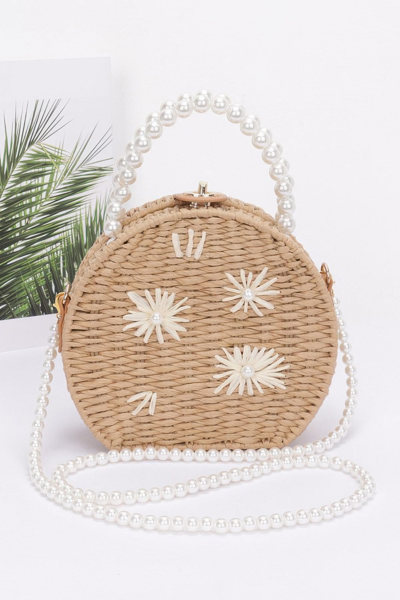 Graceful and eye-catching, the Pearl Blossom Clutch brings together artisanal detail and refined design in one unforgettable piece. Handcrafted from faux straw, this beautifully structured clutch features delicate floral embroidery that adds a soft, feminine touch. The standout pearl handle offers a luxurious finish, doubling as both a functional feature and a stylish statement. Compact yet roomy enough for your essentials, it’s ideal for weddings, garden parties, or elegant evenings out. With its blend of natural texture and polished elegance, this clutch is a timeless addition to any accessory collection.