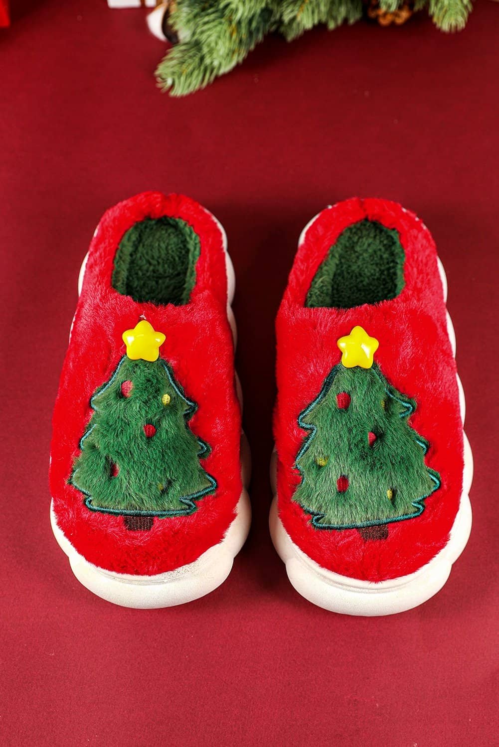 Fiery Red Christmas Tree Graphic Thick Sole Plush Slippers