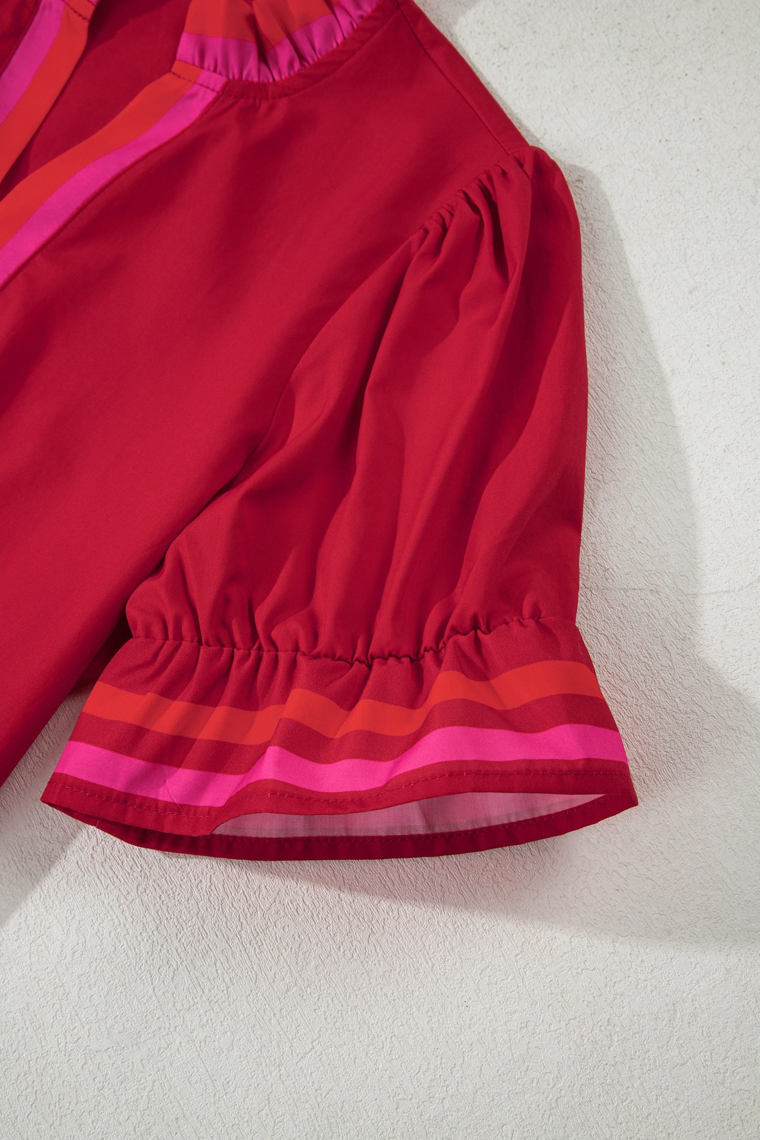 This short sleeve blouse pairs well with both denim shorts and skirts.