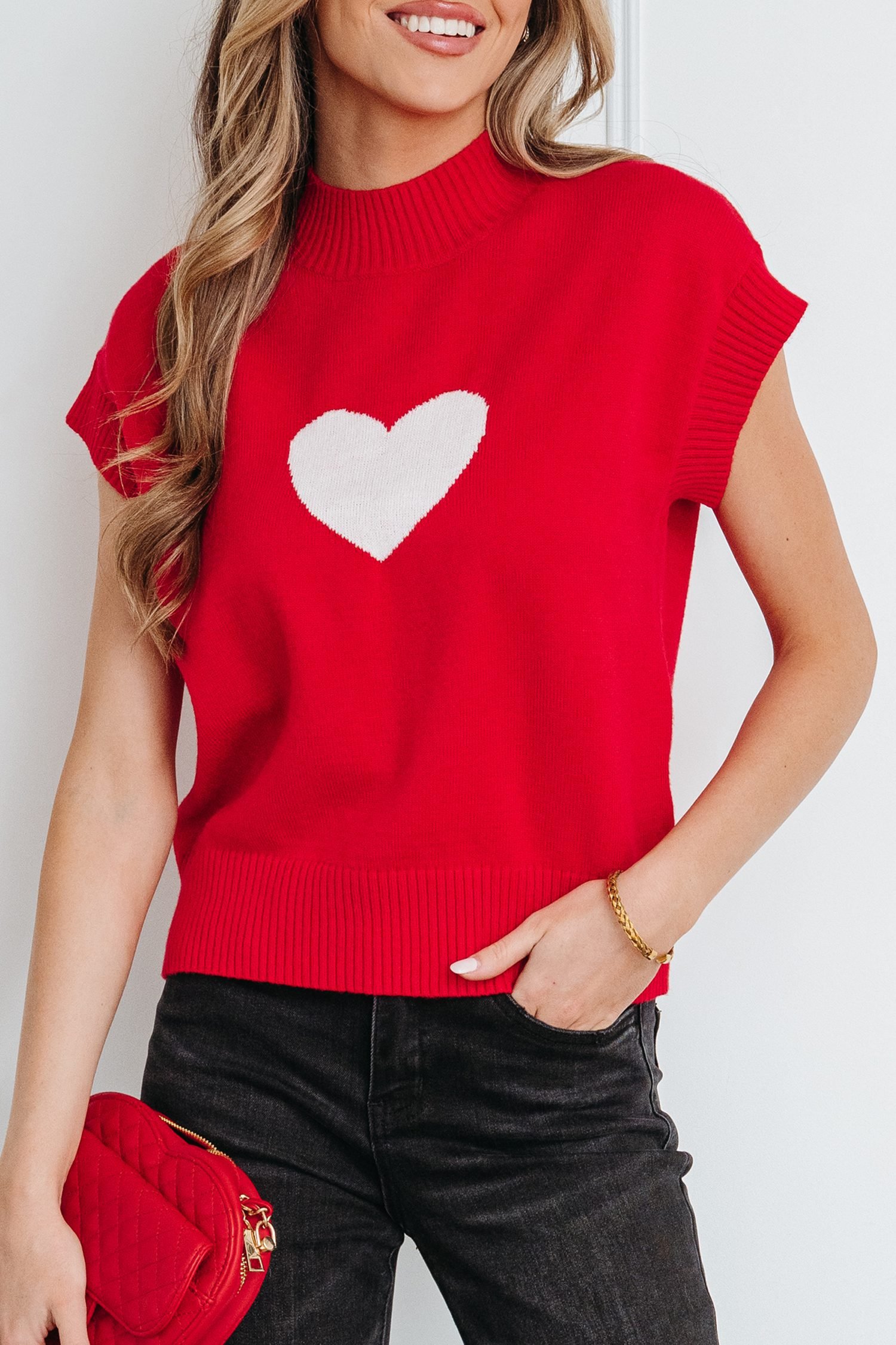Cute Valentine heart sweater brings a sweet, trendy look for seasonal outfits.
