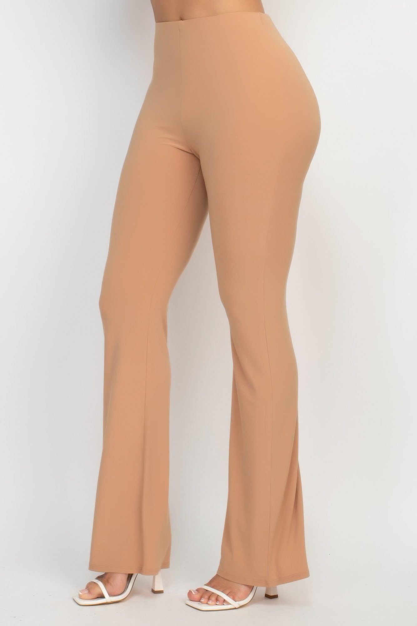 Effortlessly polished and endlessly wearable, these fit-and-flare casual pants combine comfort with modern elegance. Featuring a high-rise elastic waistband, they offer a secure yet flexible fit that flatters the waist. The flared leg silhouette creates a leg-lengthening effect, while the smooth, stretch-blend fabric allows for easy movement throughout the day. Their minimalist design in a solid color makes them a versatile staple for work, travel, or casual outings. Add a touch of Parisian-inspired ease to your everyday wardrobe with this graceful, go-anywhere style.